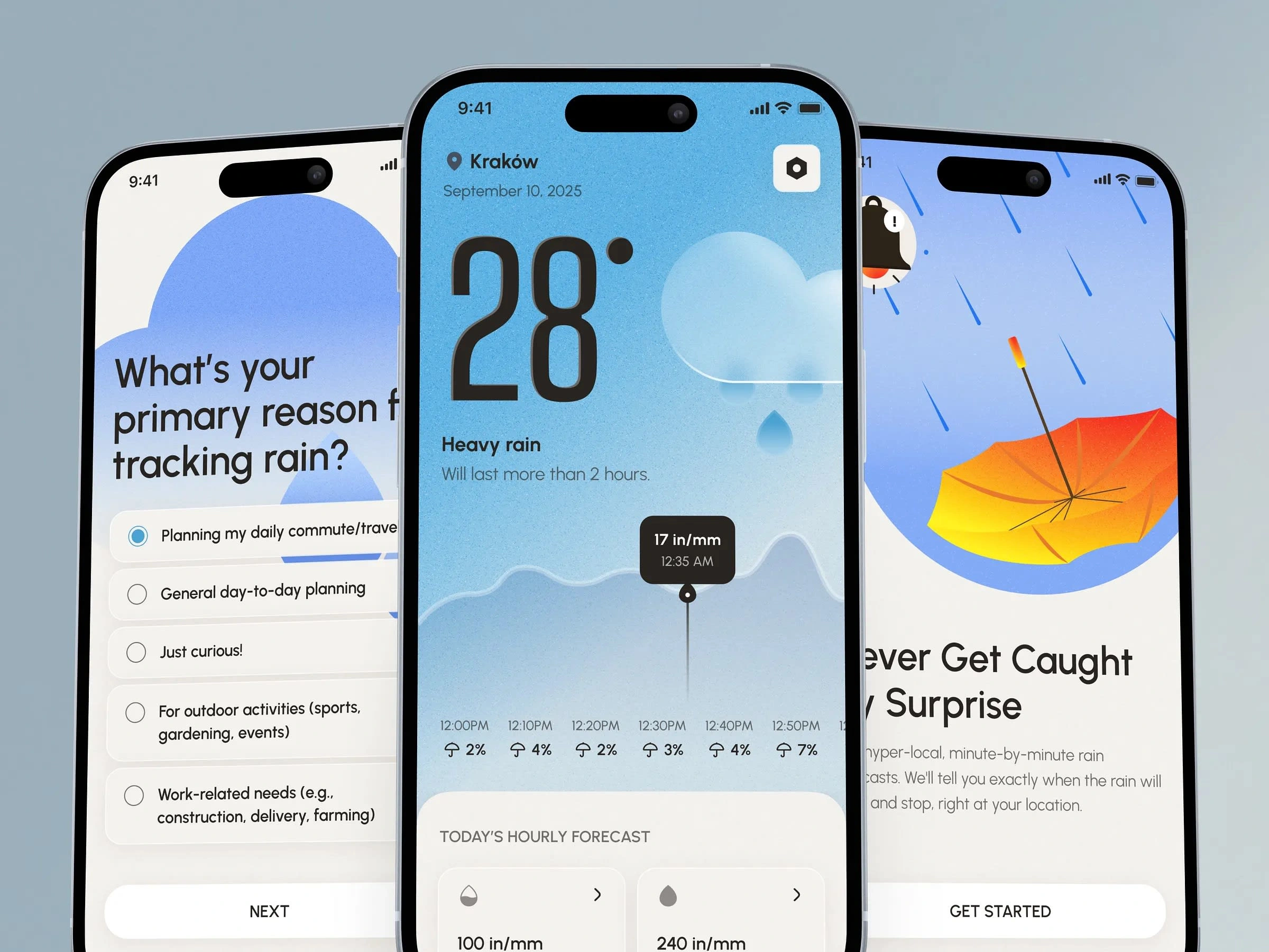We designed Rain Firecast, a custom mobile application that brings together comprehensive weather insights in one place. The goal was to create a clear, intuitive, and visually engaging interface that not only presents potential weather conditions accurately but also offers users additional layers of context and detail beyond standard forecasts.