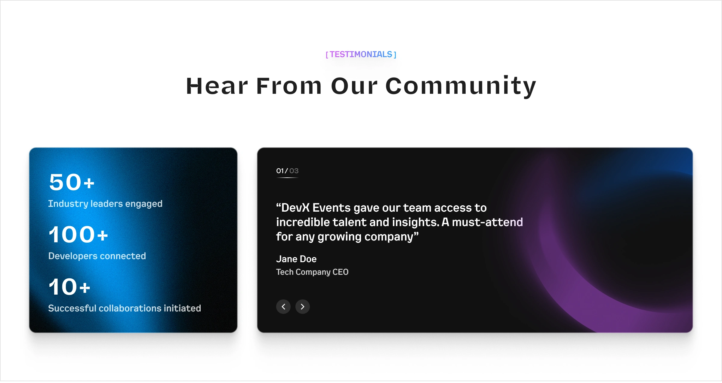 The final product provided devX with a scalable and easy-to-maintain events hub that integrates design consistency, dynamic content, and a seamless workflow between Framer and Airtable.
