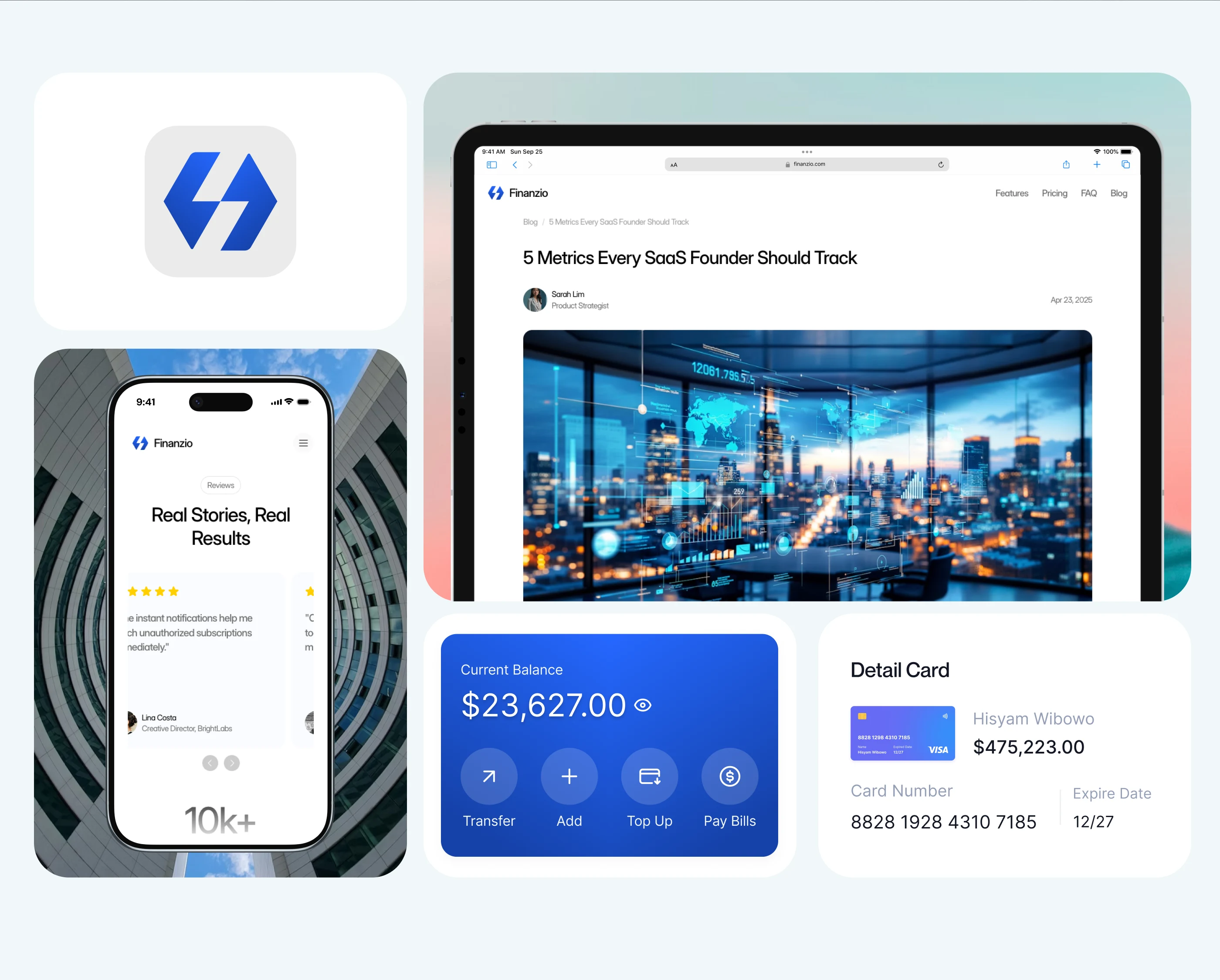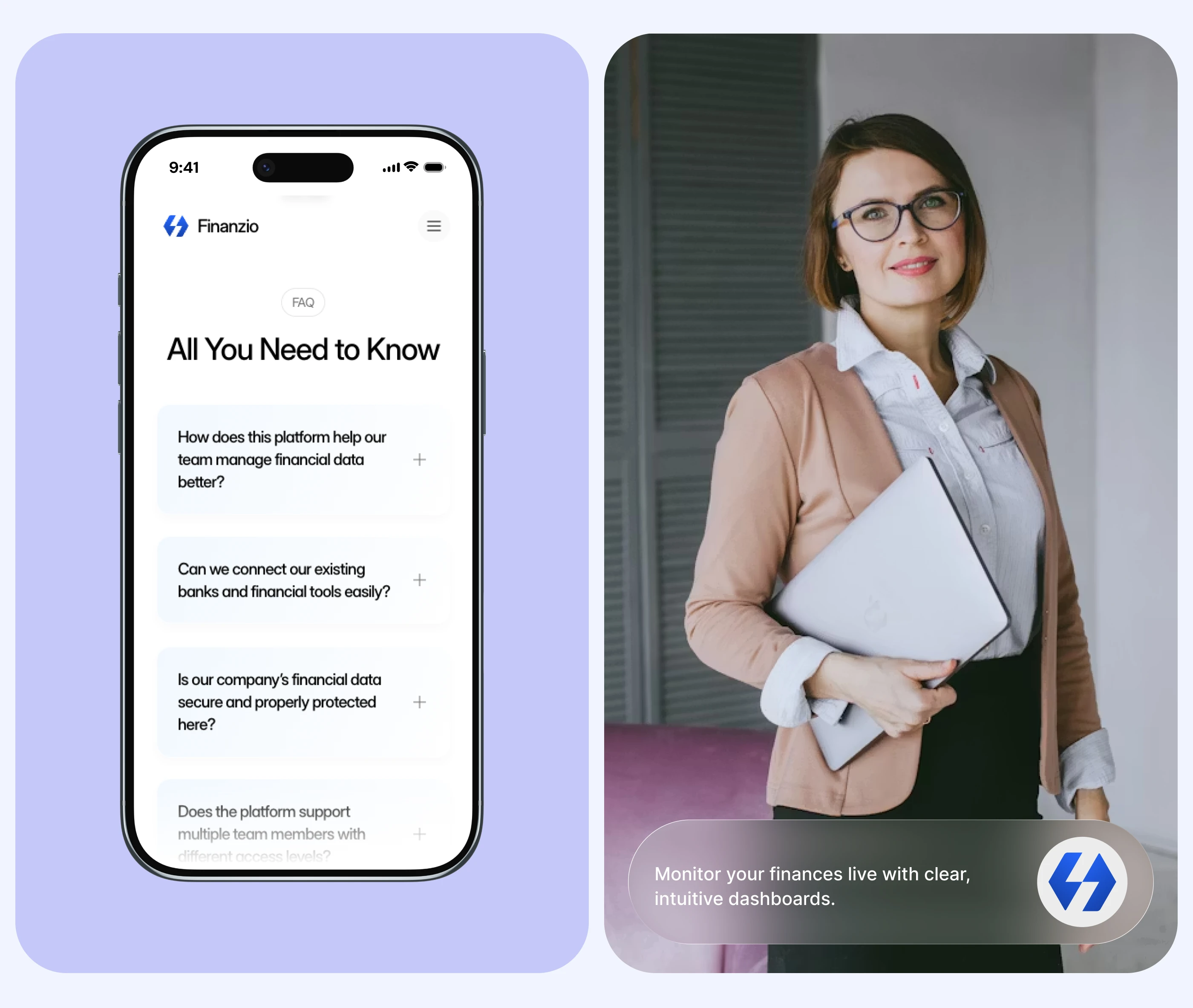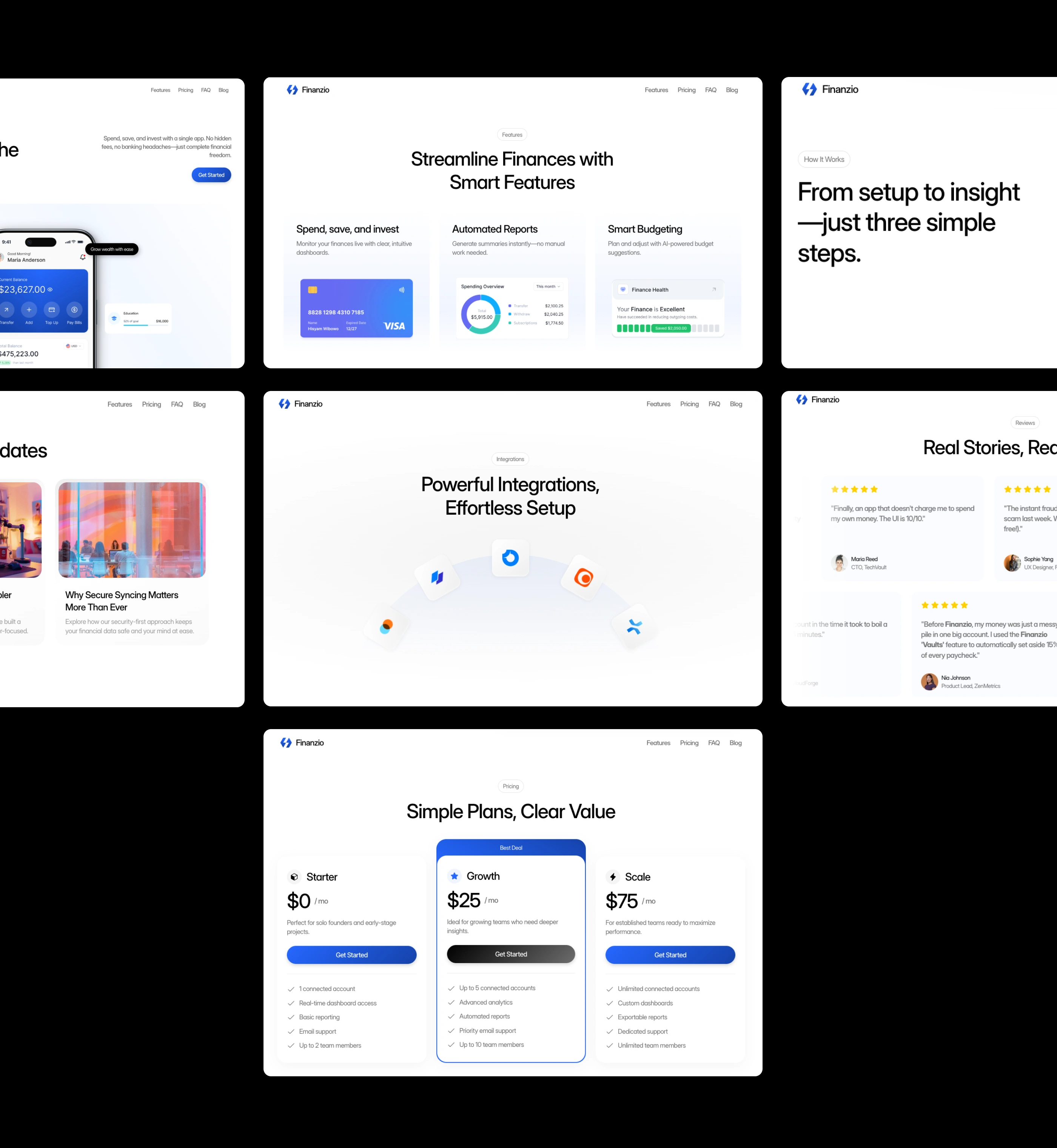 Finanzio is a modern finance SaaS platform for tracking and managing money. Designed in Figma, built in Framer—clean, intuitive, and fully responsive.