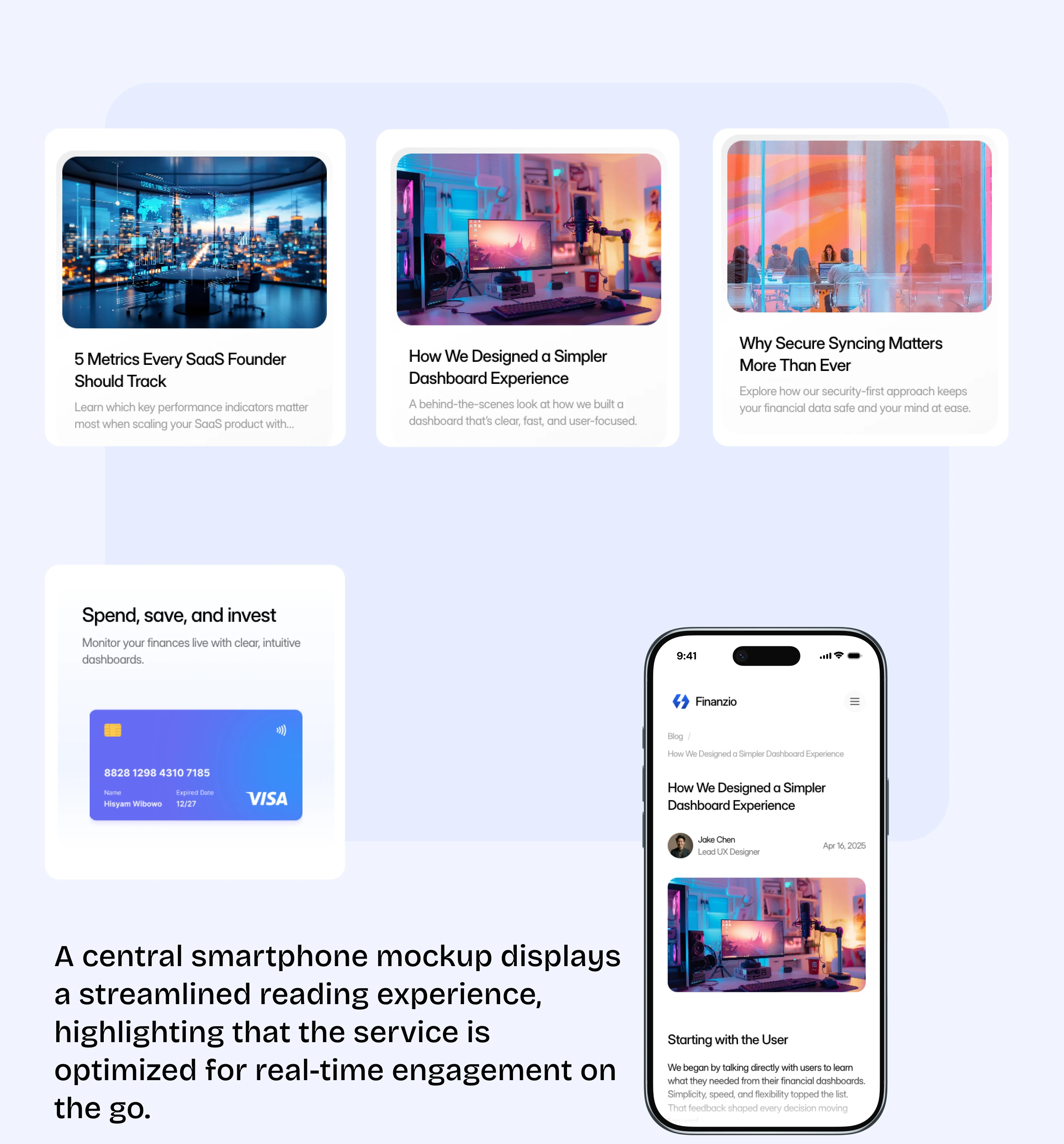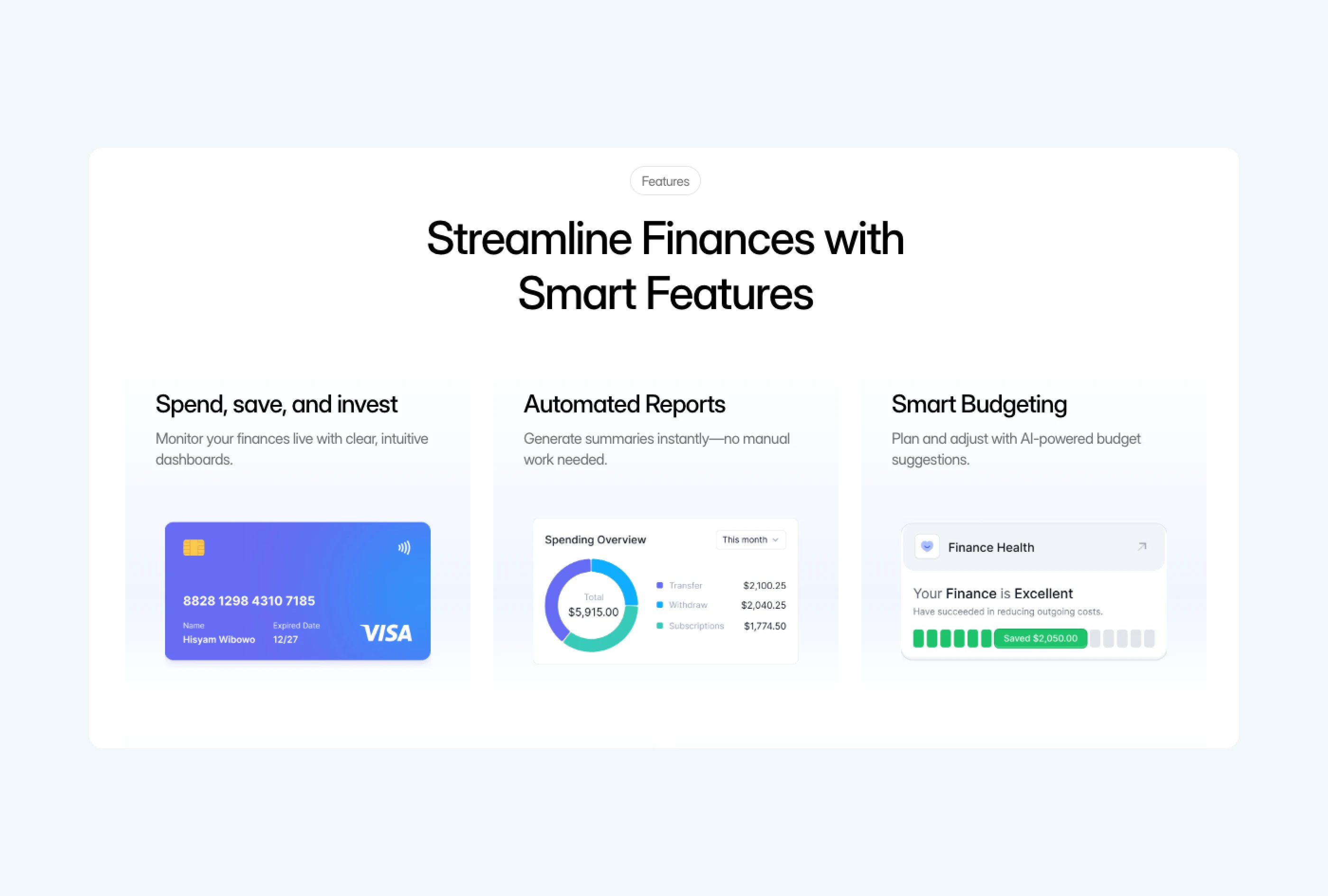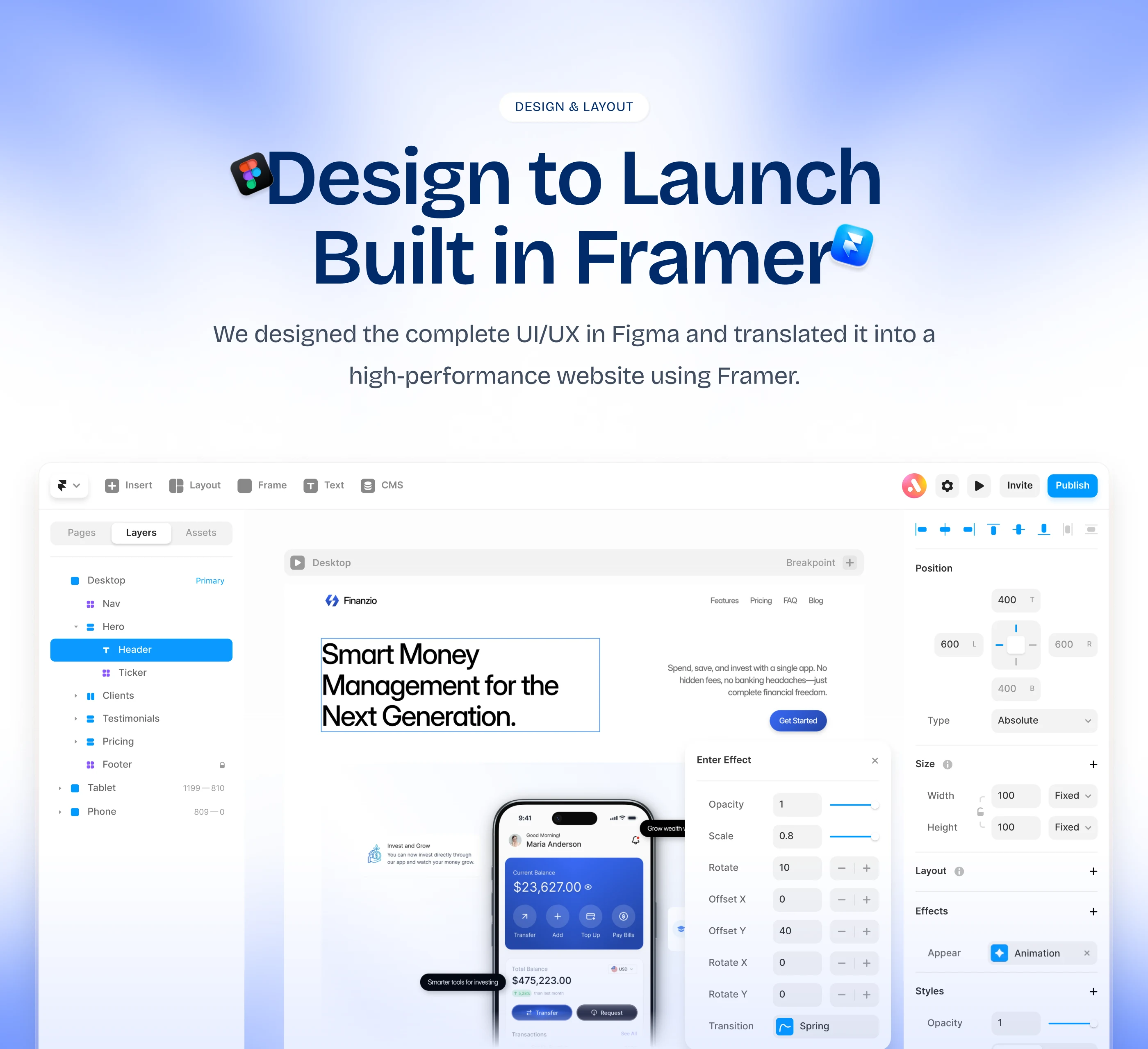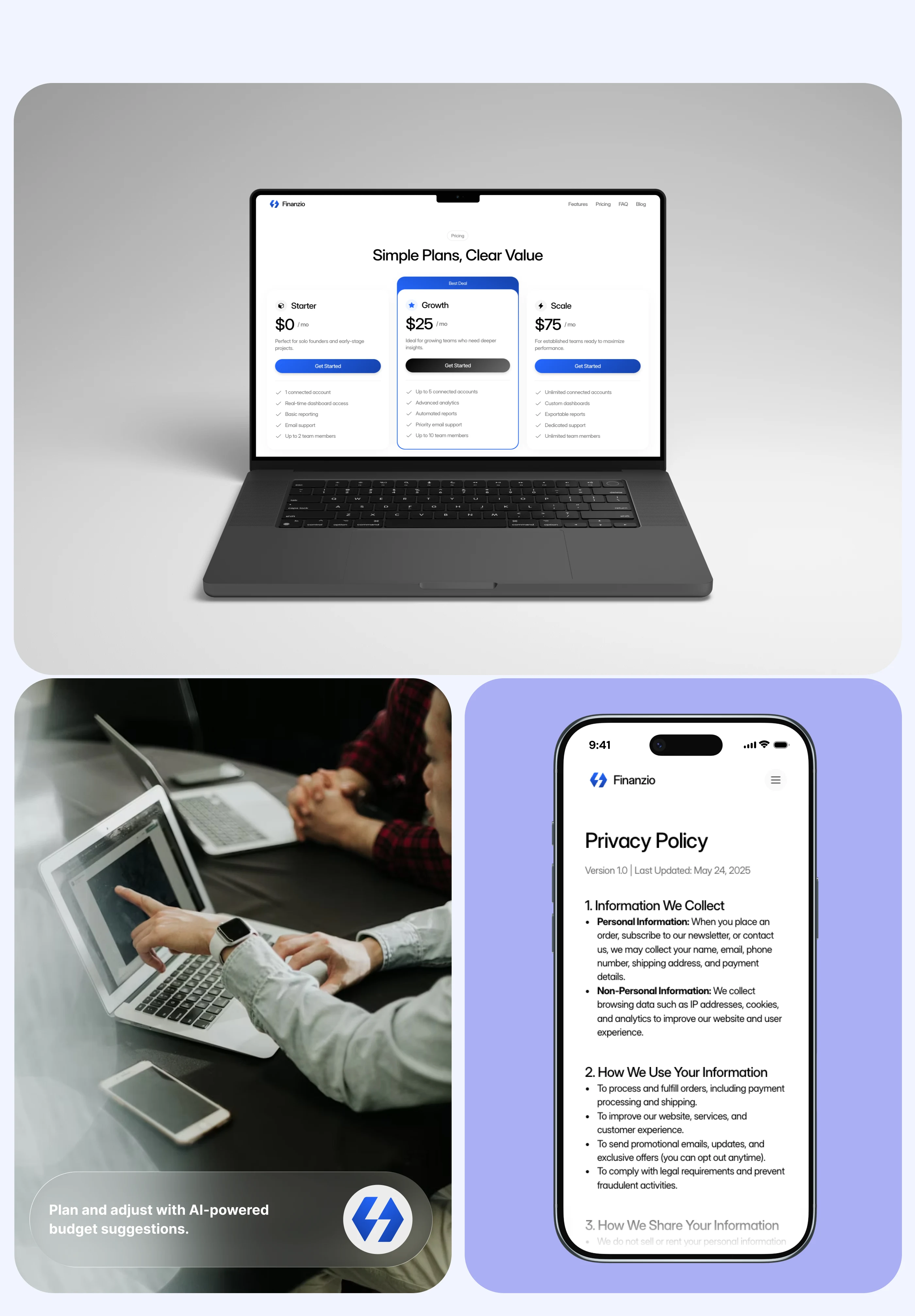 Finanzio is a modern finance SaaS platform for tracking and managing money. Designed in Figma, built in Framer—clean, intuitive, and fully responsive.
