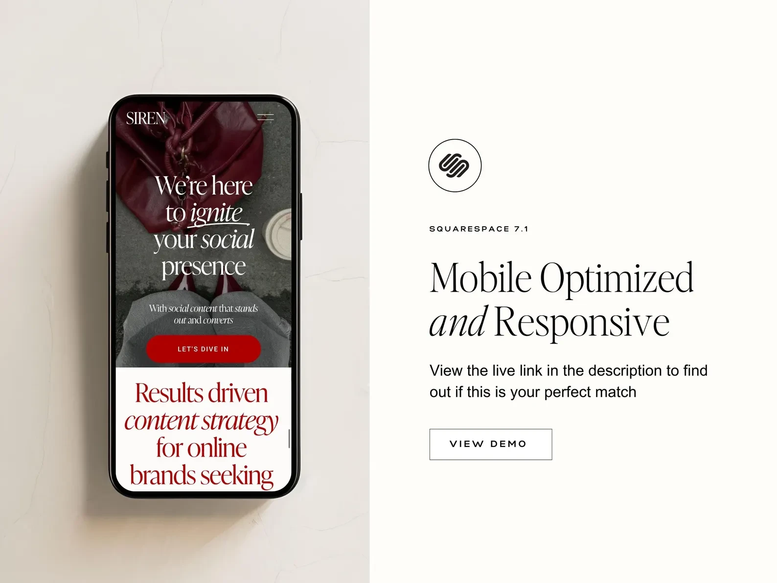 Luxury Squarespace website crafted to elevate SIREN into a premium social strategy brand—blending bold visuals, refined structure, and CTAs that convert.