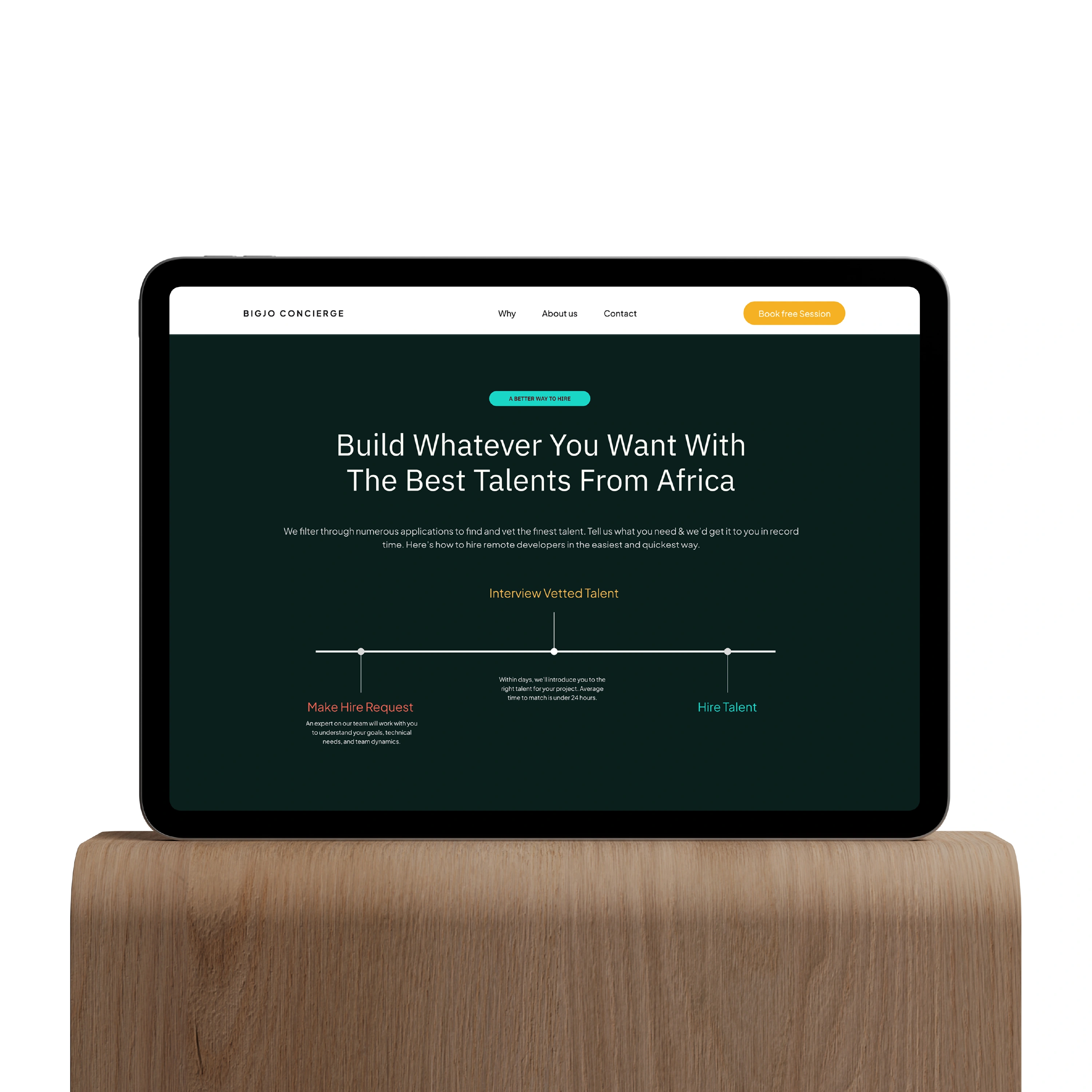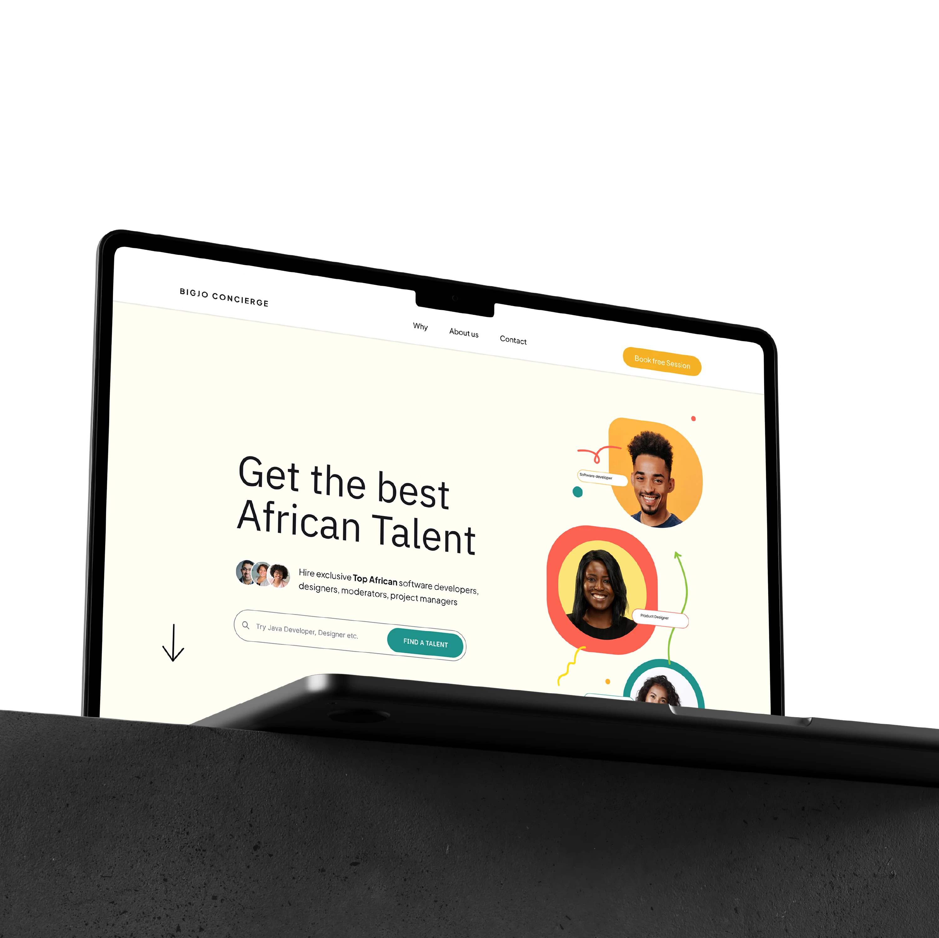 UI/UX Design project for BigJo Concierge, a premier talent acquisition and management company that connects Web2 and Web3 brands to top tier African talents.