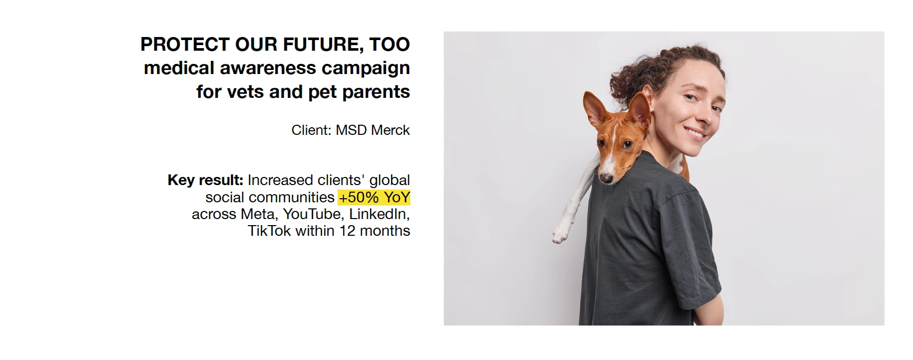 Increased clients' global social communities +50% YoY across Meta, YouTube, LinkedIn and TikTok within 12 months
