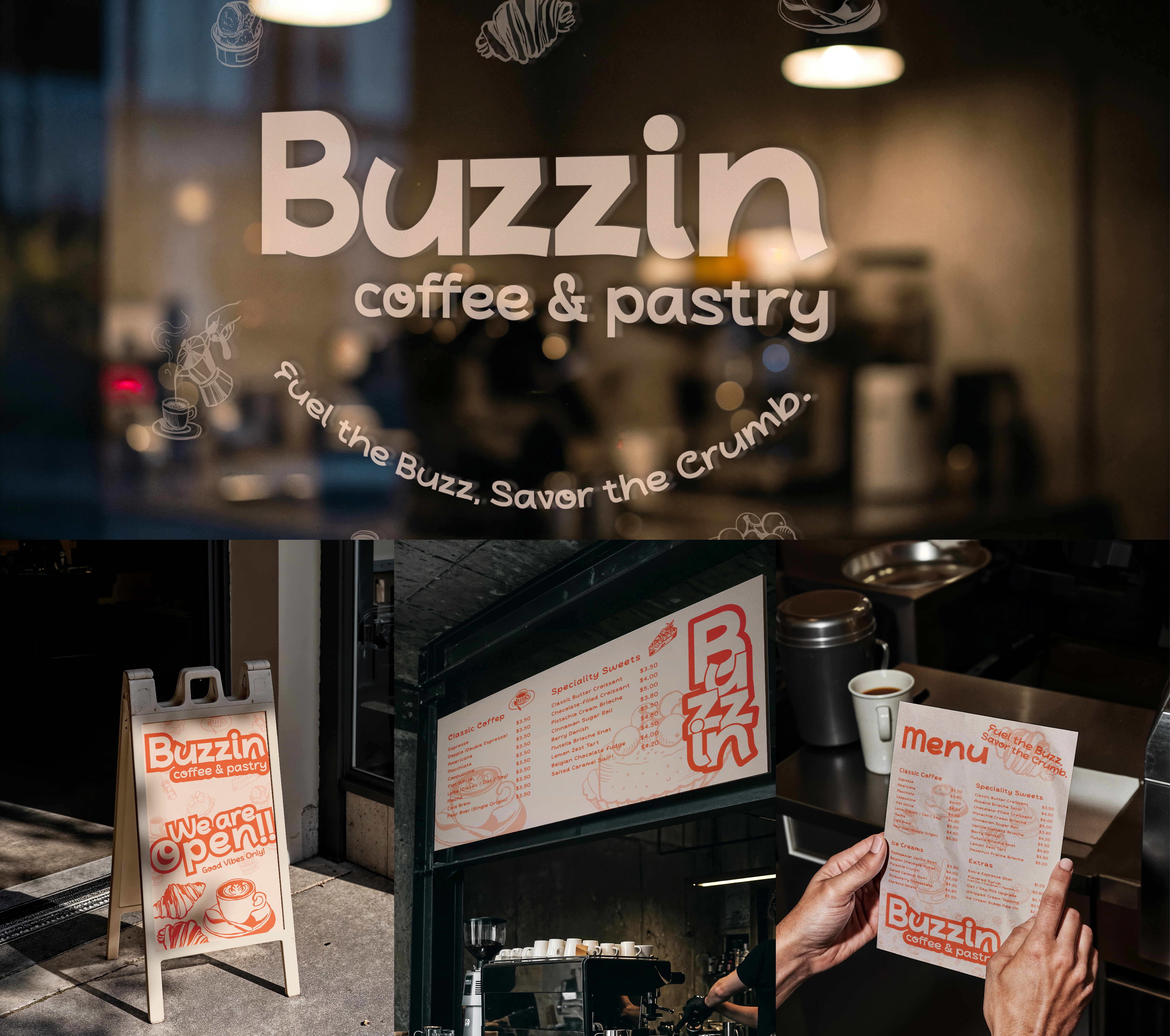 By blending playful energy with modern consistency, we created a system that feels fresh, welcoming, and unmistakably Buzzin. From the aroma of coffee to the sweetness of pastries, every visual touchpoint now works together to deliver a memorable experience. The brand is no longer just a café; it’s a buzzing destination that stands out and connects with its community.