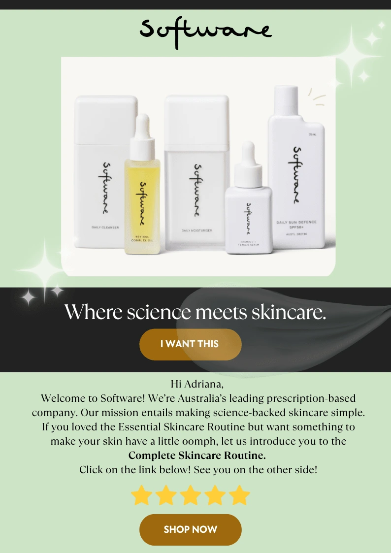 I created an intro Email Design for a skincare brand. Included in this are the brand logo, hero image, CTA. Below is the sample - let me know your thoughts :)