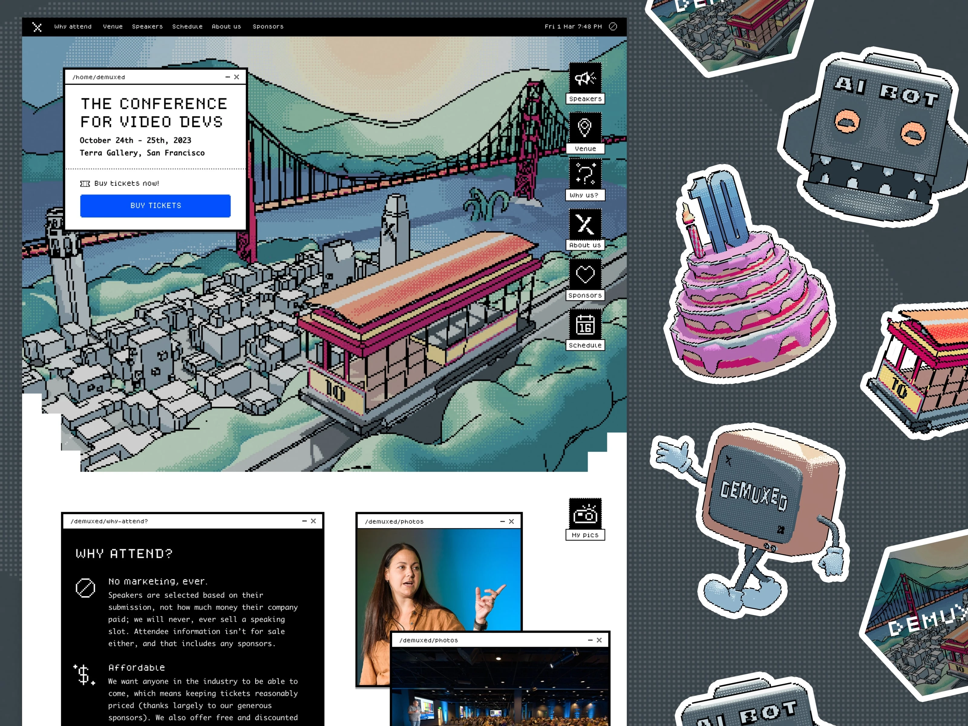 Demuxed on their branding, marketing design and website. Demuxed is a San Francisco based conference for video engineers. Attendees work on some of the best video products on the web, with great speakers from the likes of Netflix, Google and YouTube.