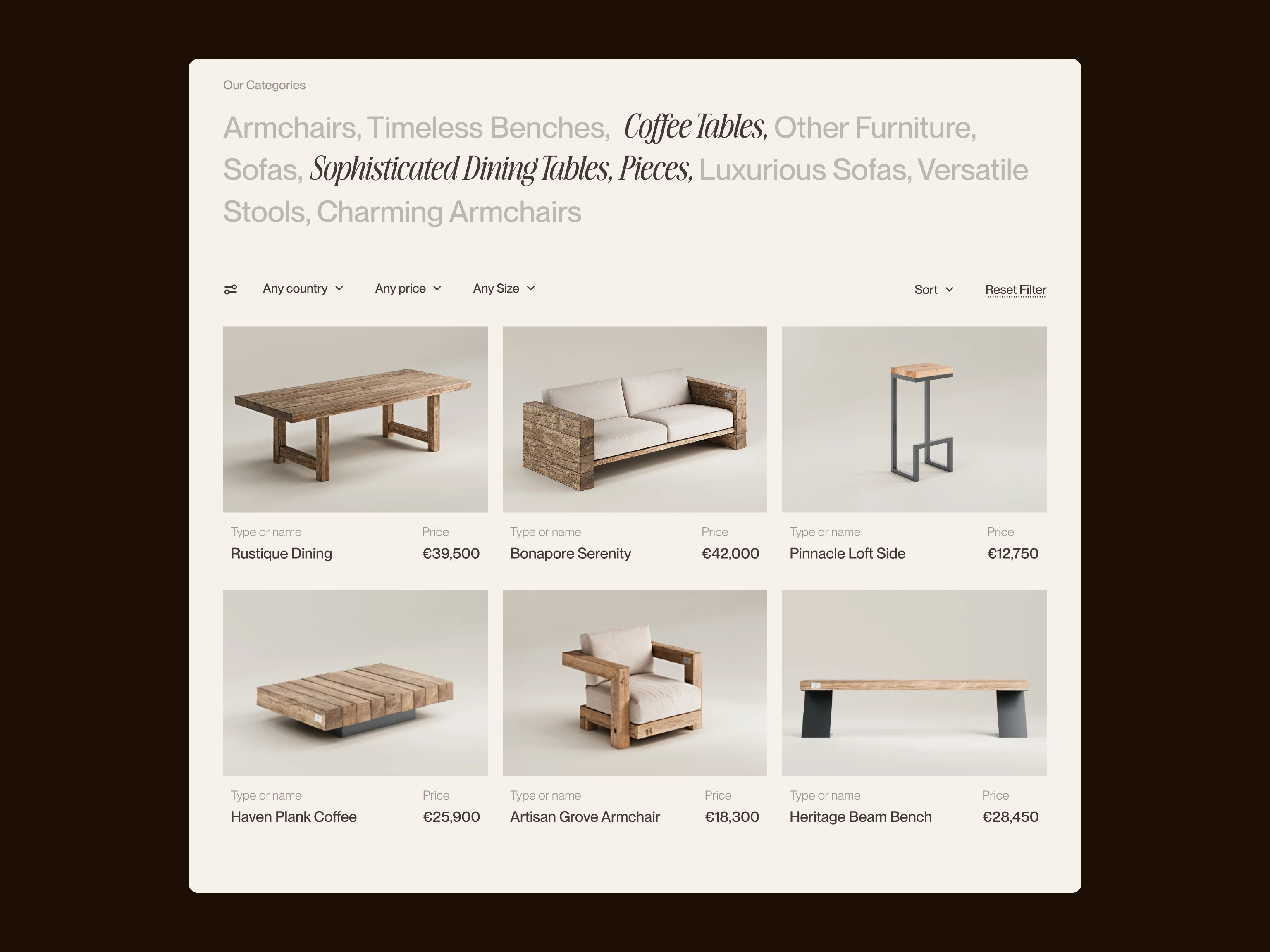 Transform your space with furniture that’s as unique as you are! Our collection features one-of-a-kind designs showcased on a bold, asymmetrical website—because your style deserves to stand out. From striking shapes to functional artistry, each piece is crafted to inspire and elevate your home. But hurry—these exclusive designs are in limited stock!
