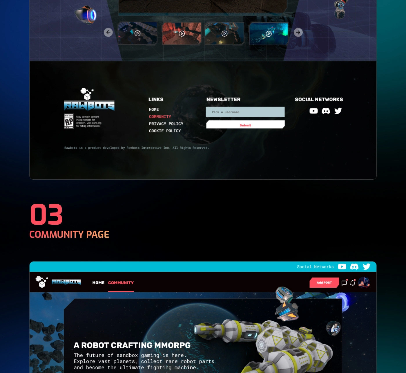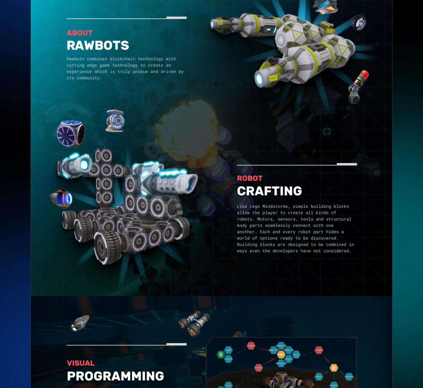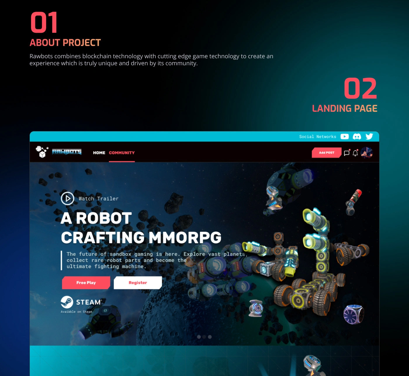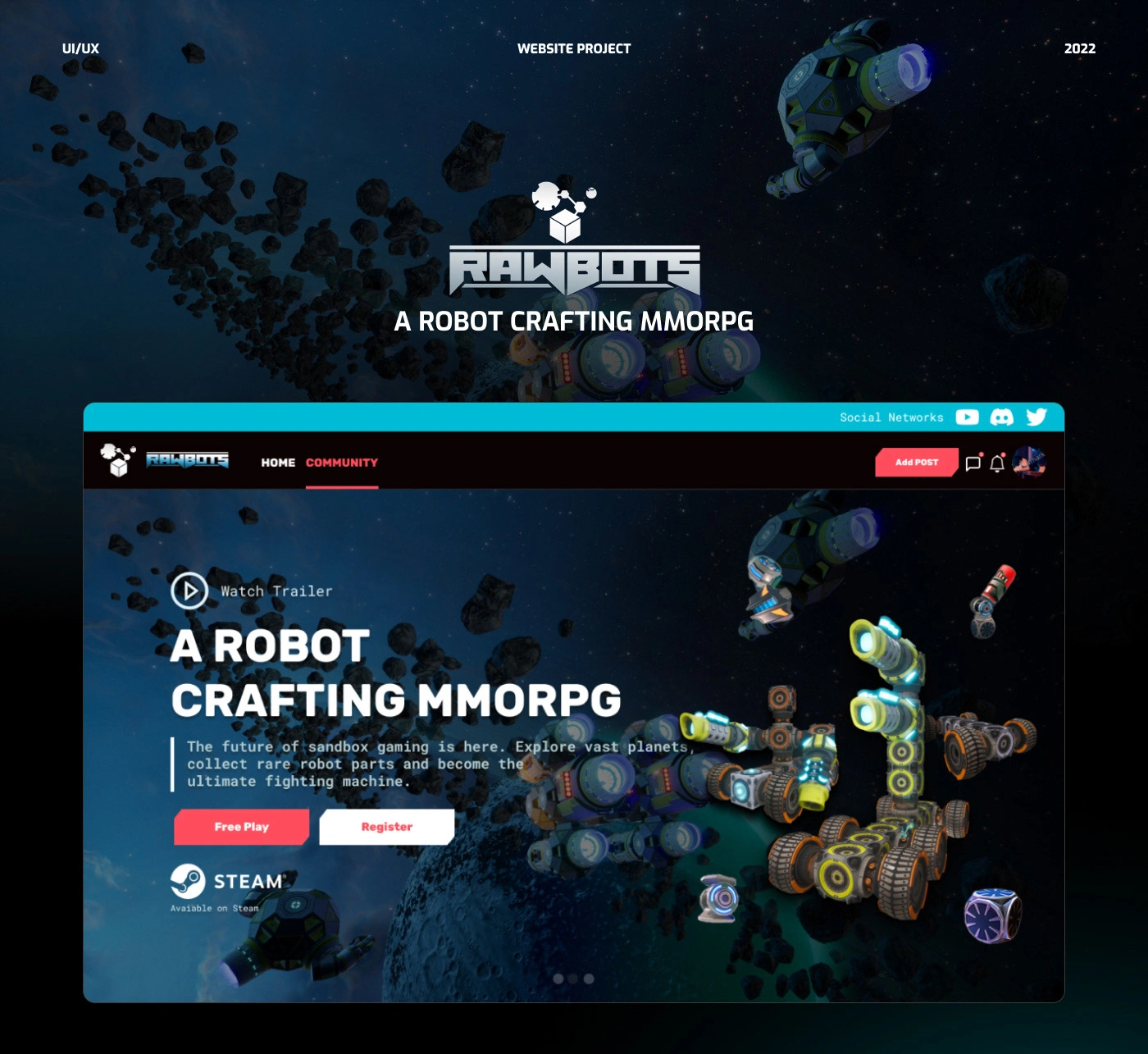 Rawbots is a game on steam platform. I revamp the entire website with futuristic space theme. Revamping the website UX boost conversion by 30%.