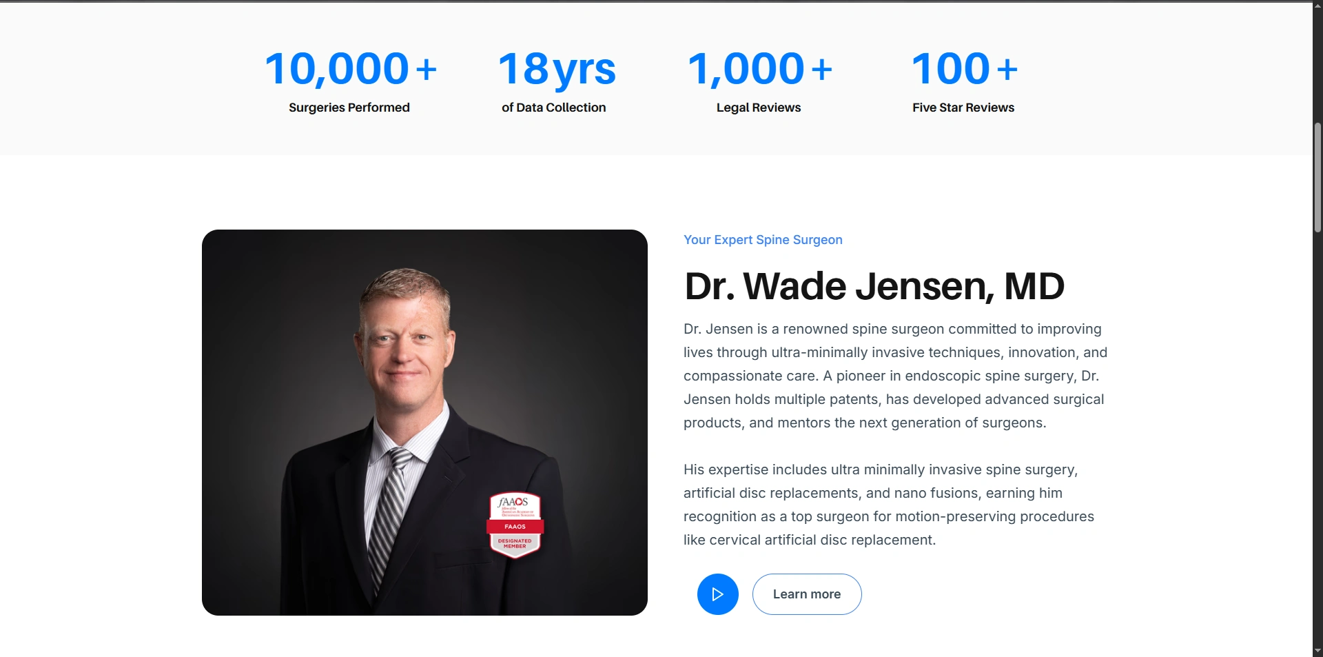 The site now serves as a high-quality digital front door for Dr. Jensen’s practice, reinforcing his position as an innovator in spine surgery.
