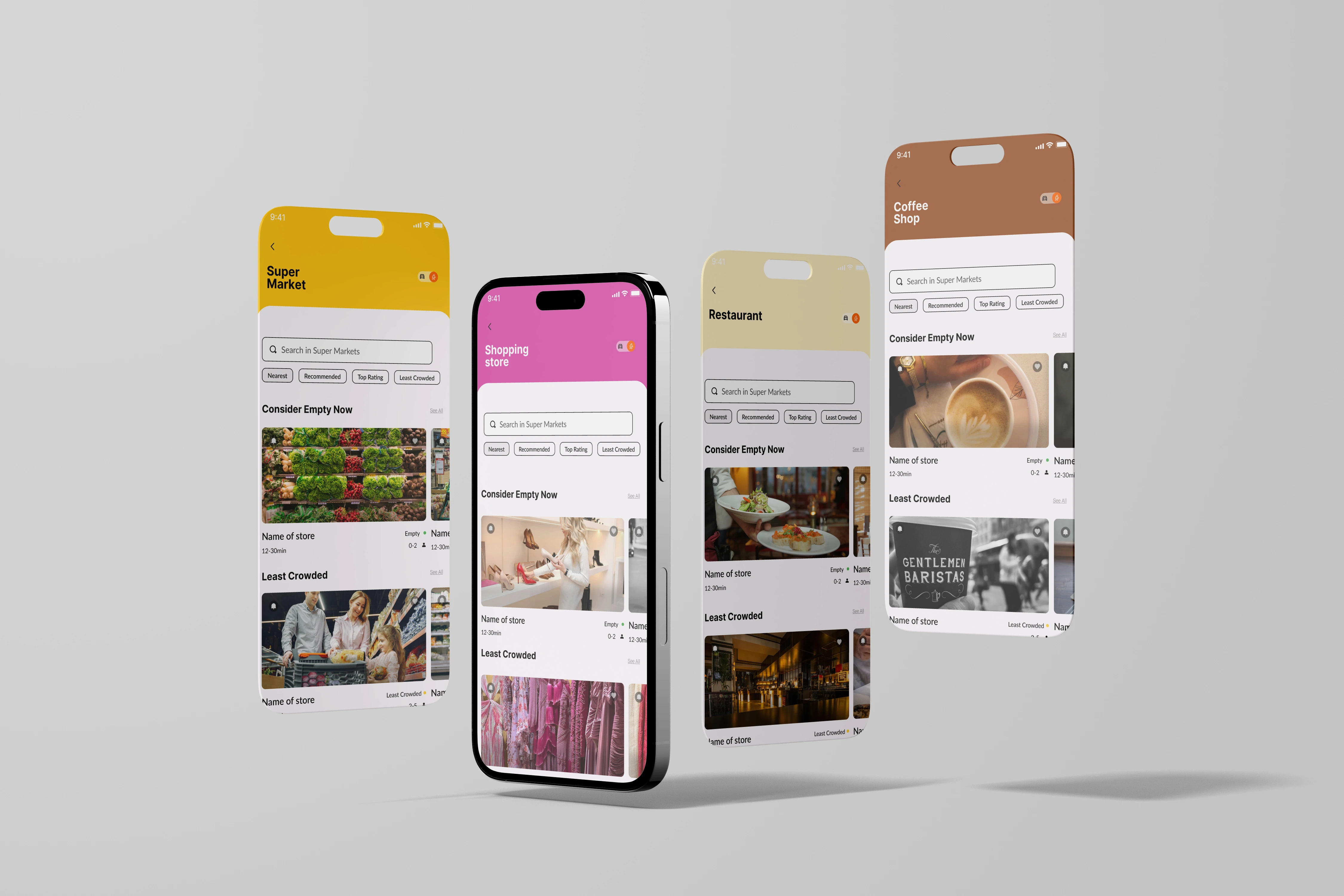 CrowdEase is a mobile app concept that helps people check real-time crowd levels at their favorite spots — cafés, restaurants, co-working spaces and more.