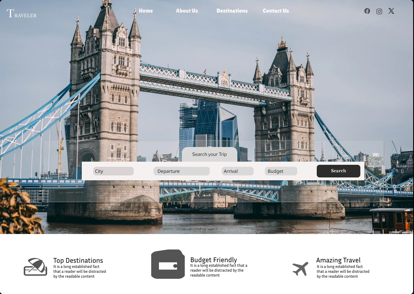 Design for a Website named Traveler a traveling website this is the Home page of that