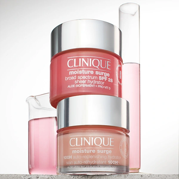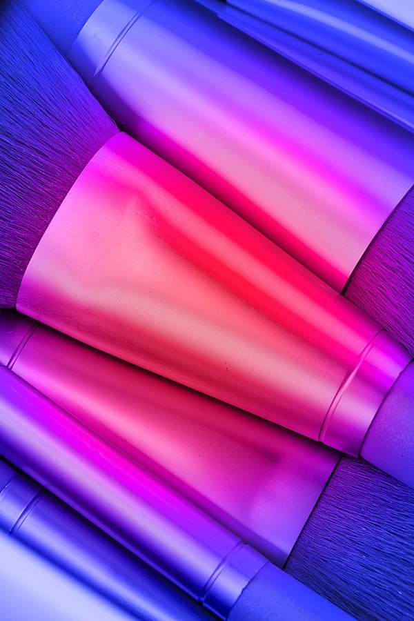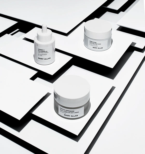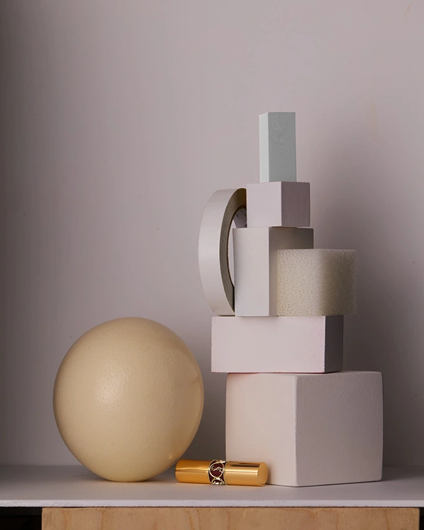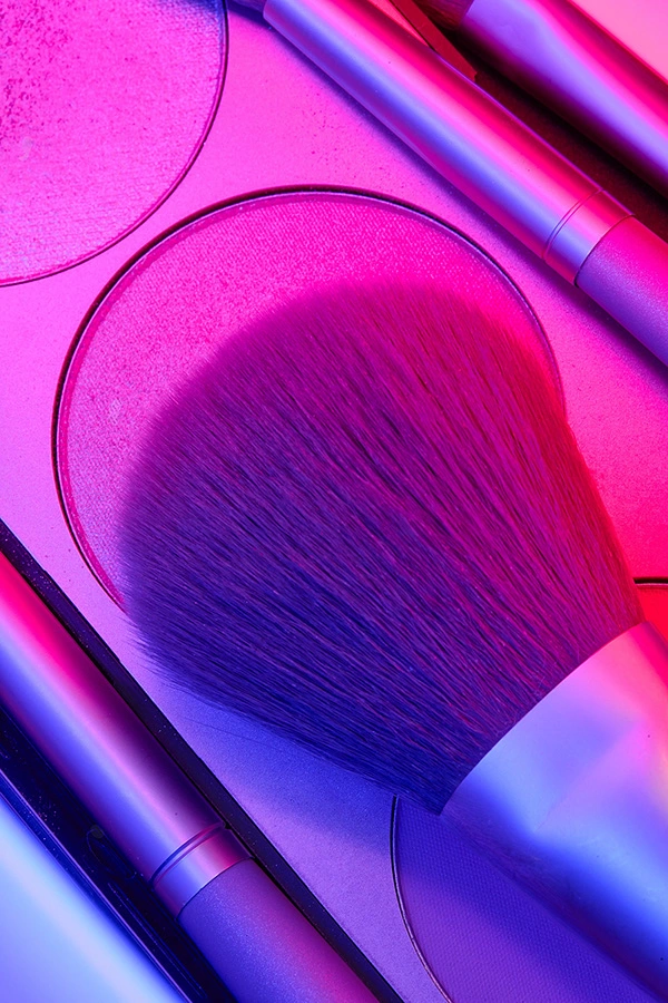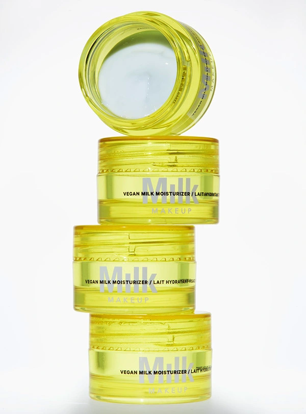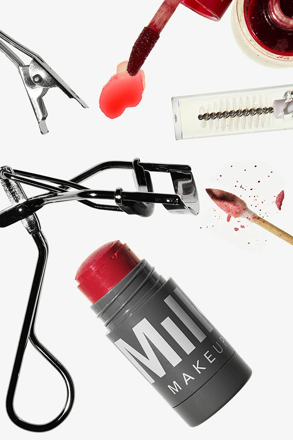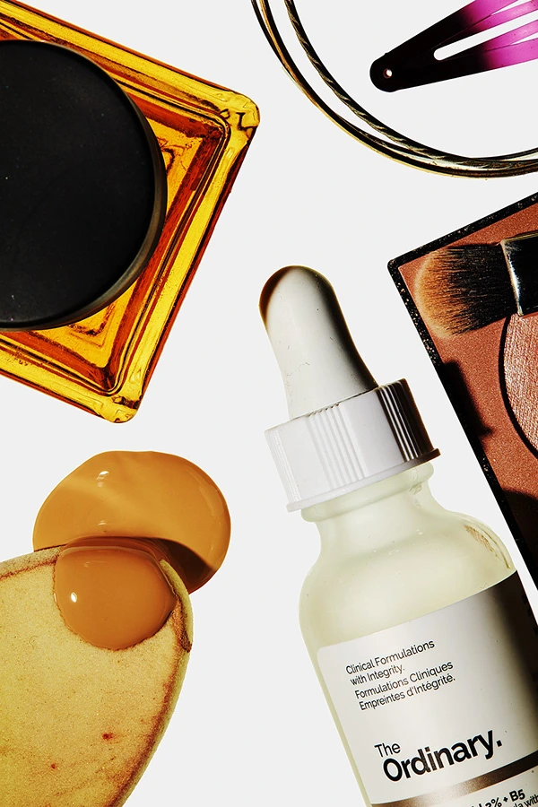 Cosmetics photography of containers, bottles, smudges, models