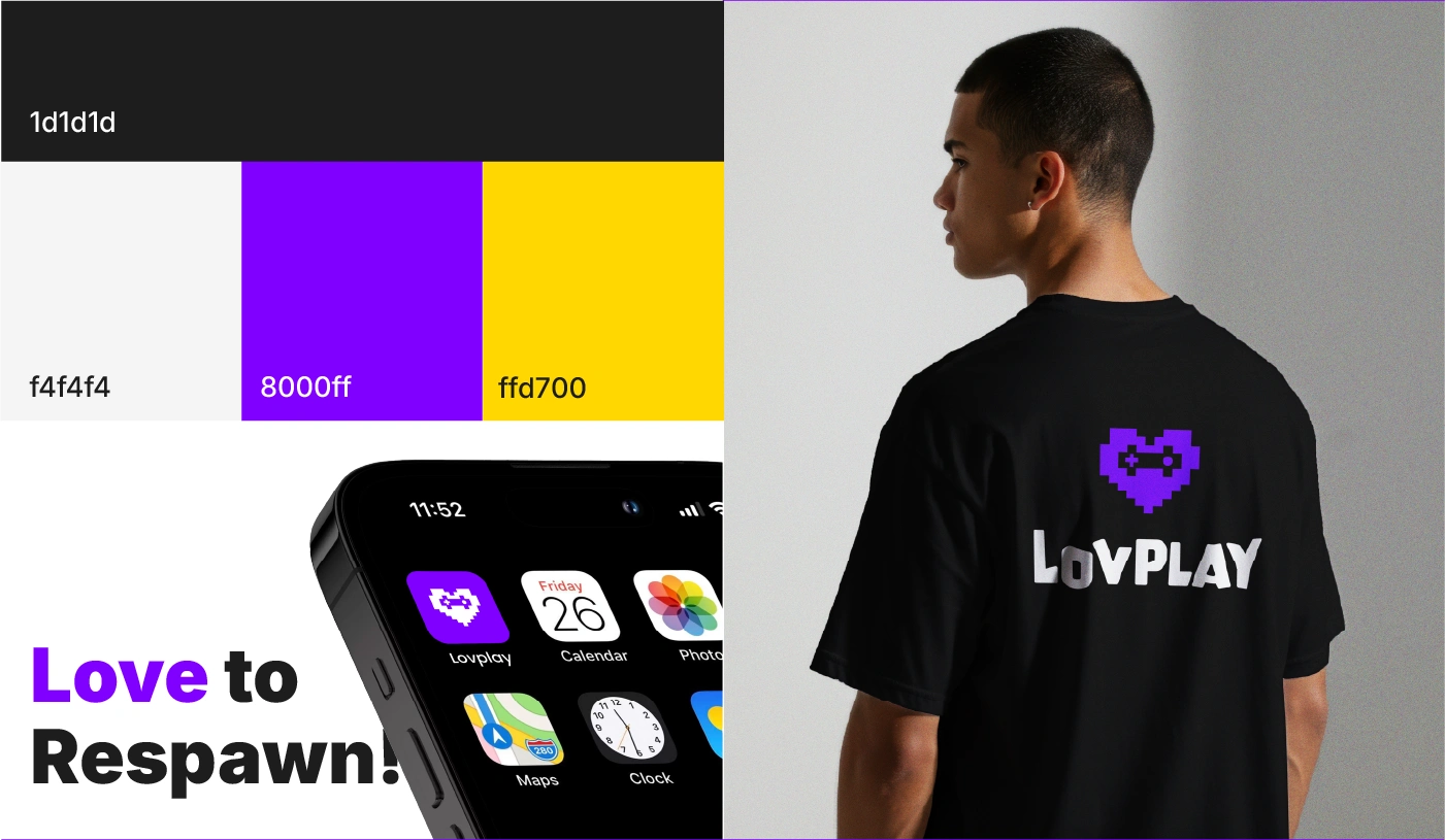 LovPlay is a fictional brand that blends retro gaming vibes with modern style using pixel art, bold colors, and playful typography.