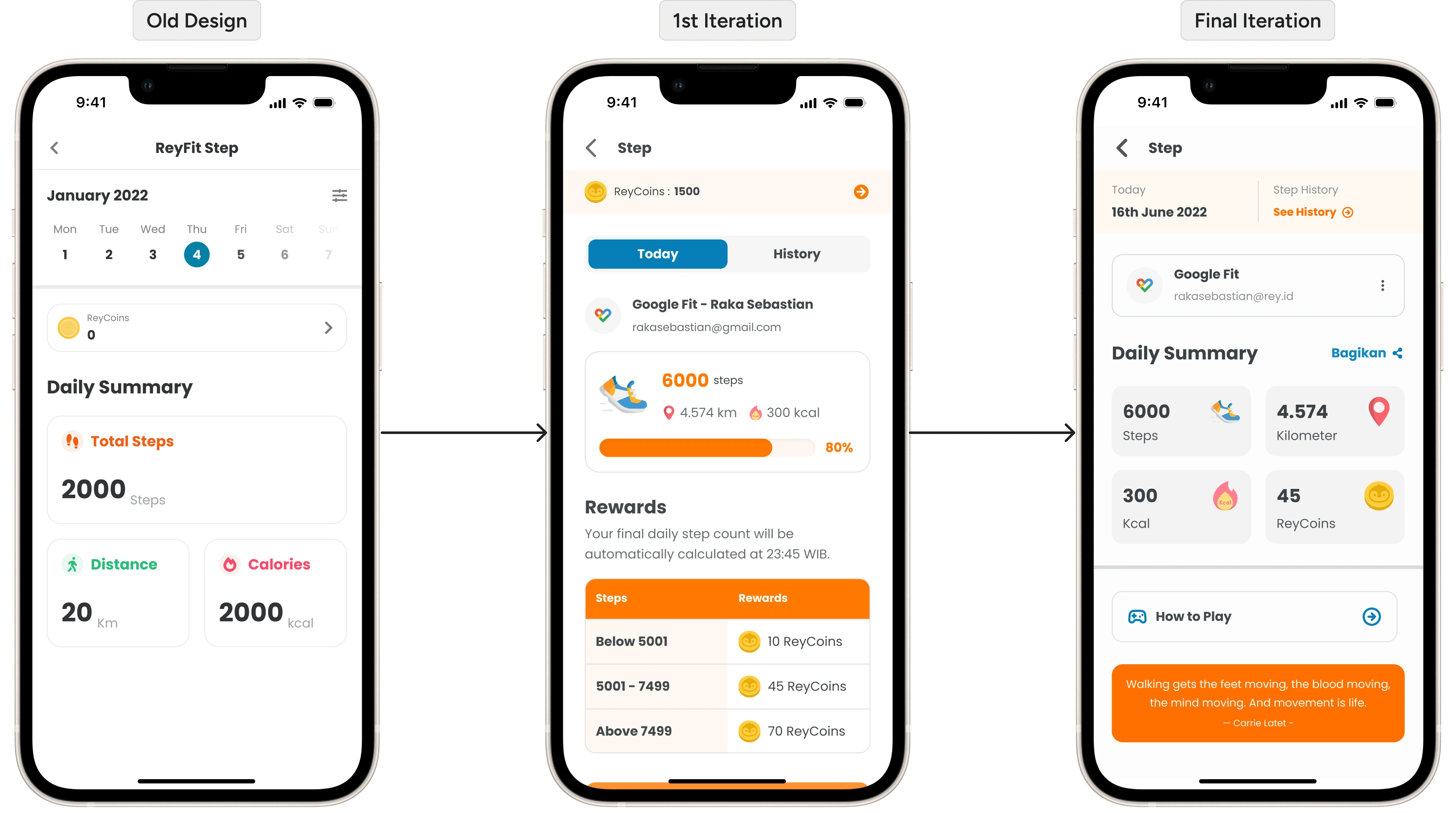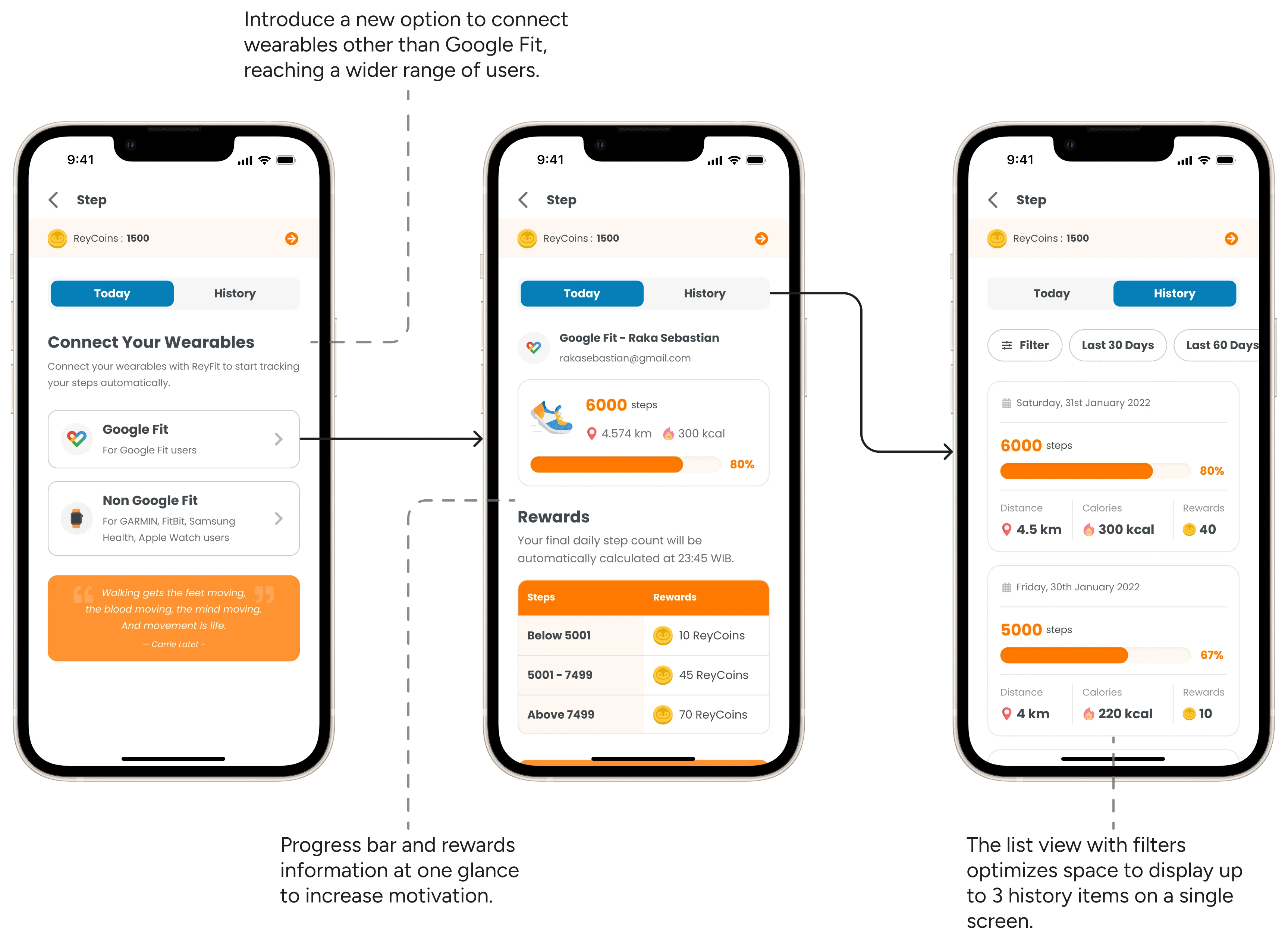 At the time, ReyFit offers features such as step tracker
