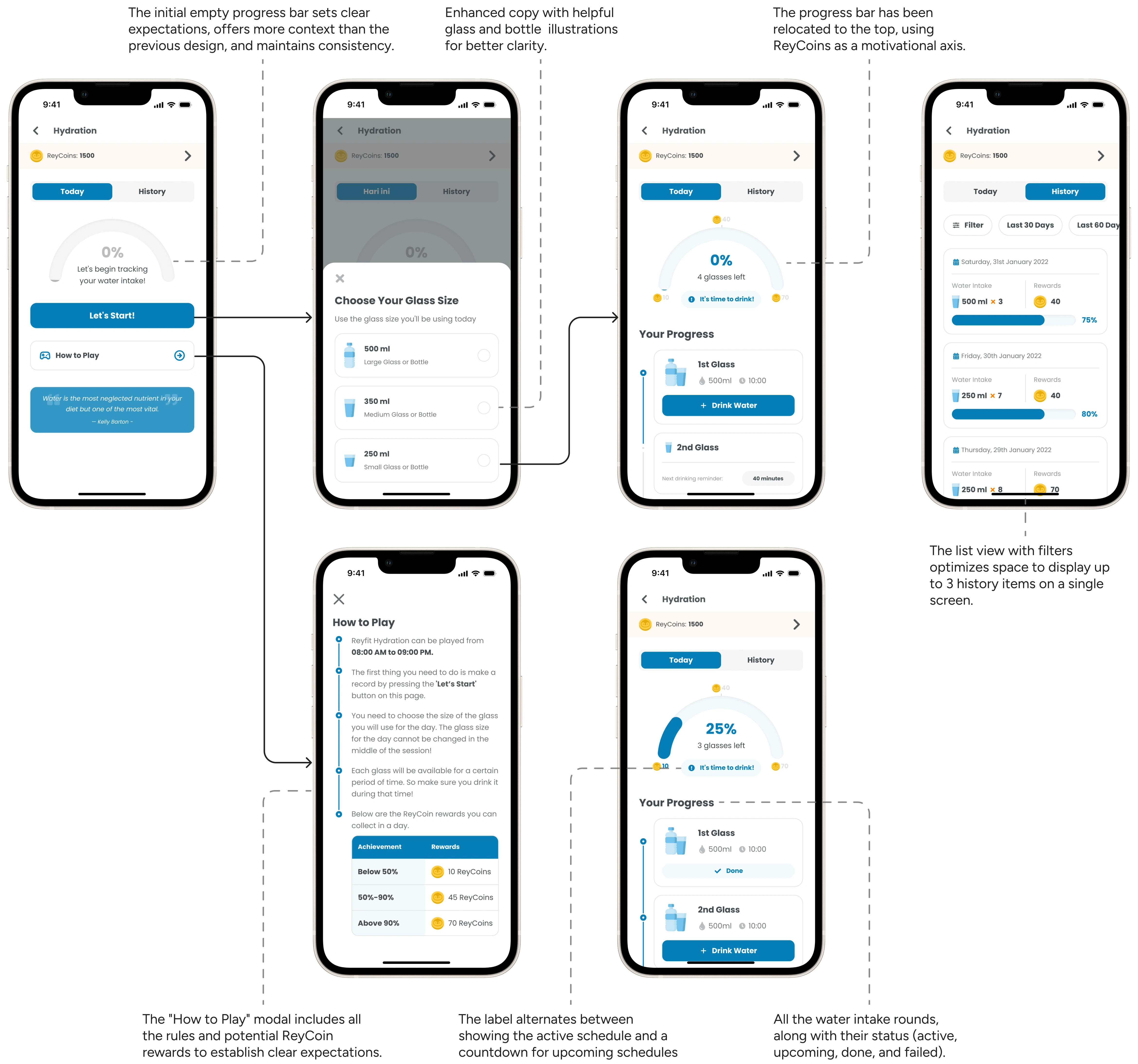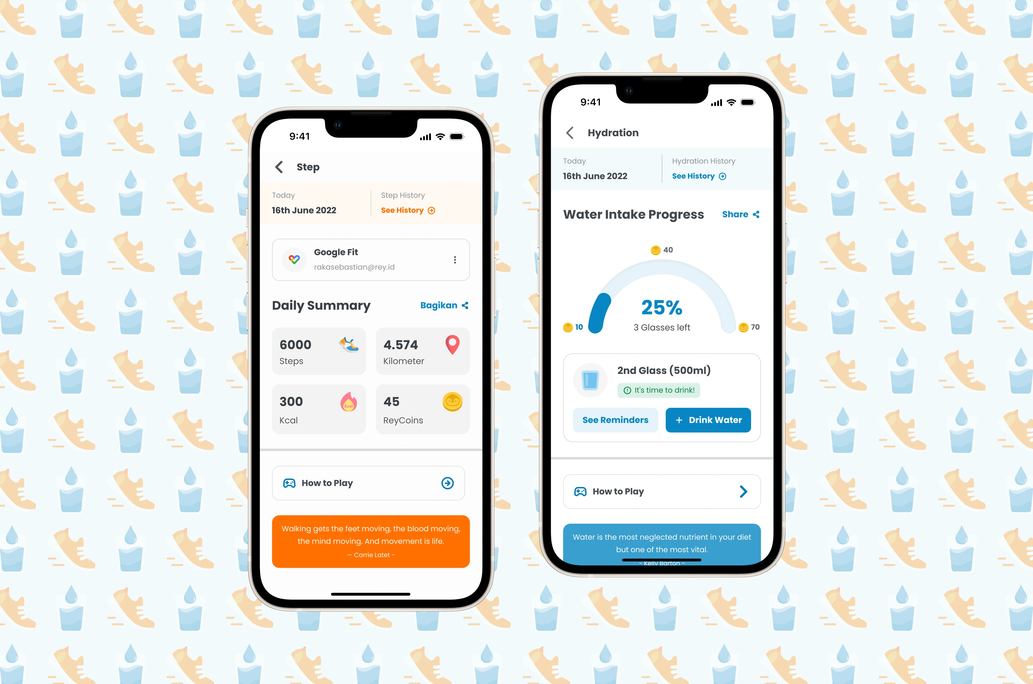 (ReyFit Step) and water intake reminders