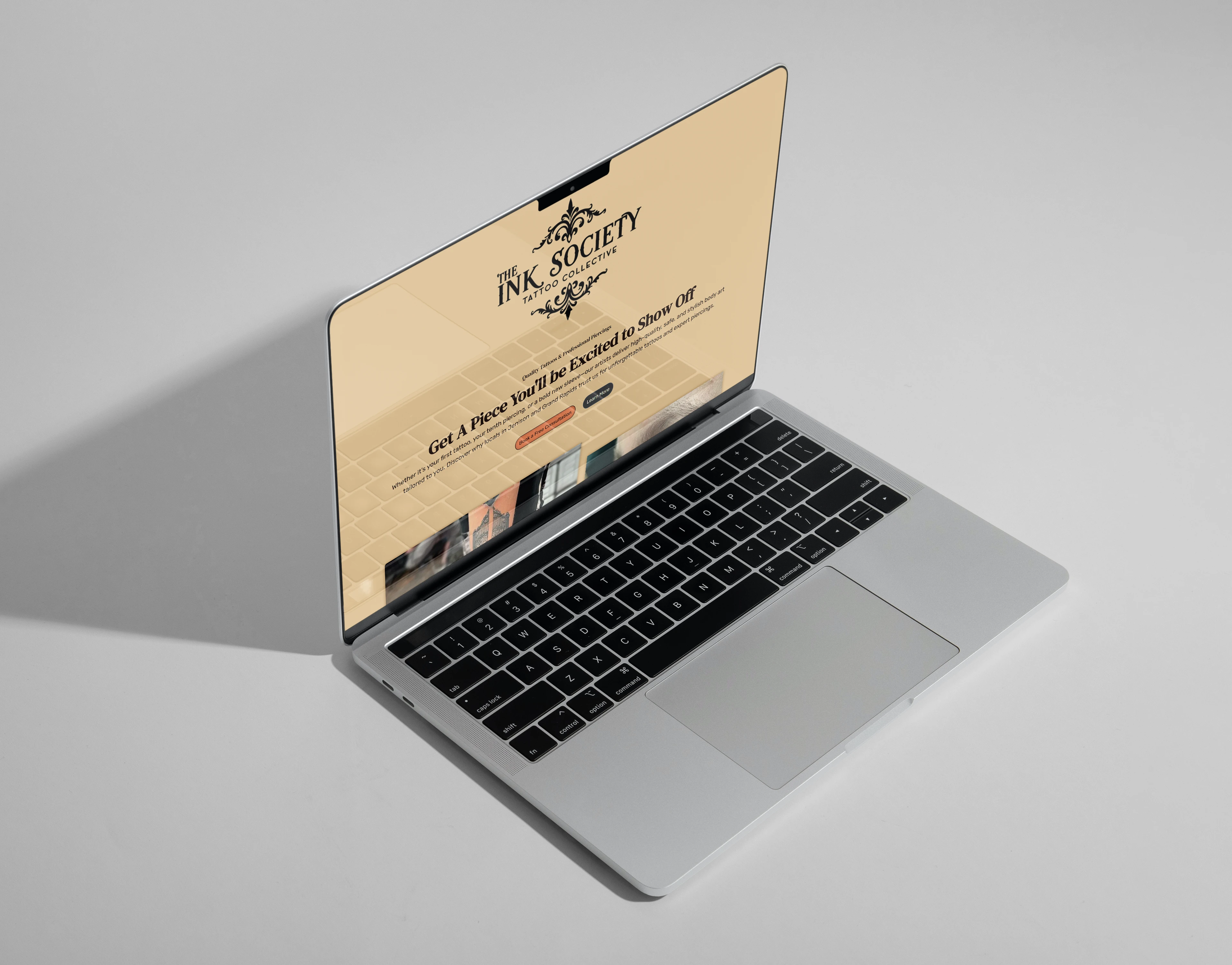 We partnered with The Ink Society Tattoo Collective, a premium tattoo and piercing studio in Jenison, MI, to fully redesign their online identity and booking flow. The goal was to reflect the studio's upscale, vintage-inspired aesthetic while improving lead capture, appointment scheduling, and social visibility.