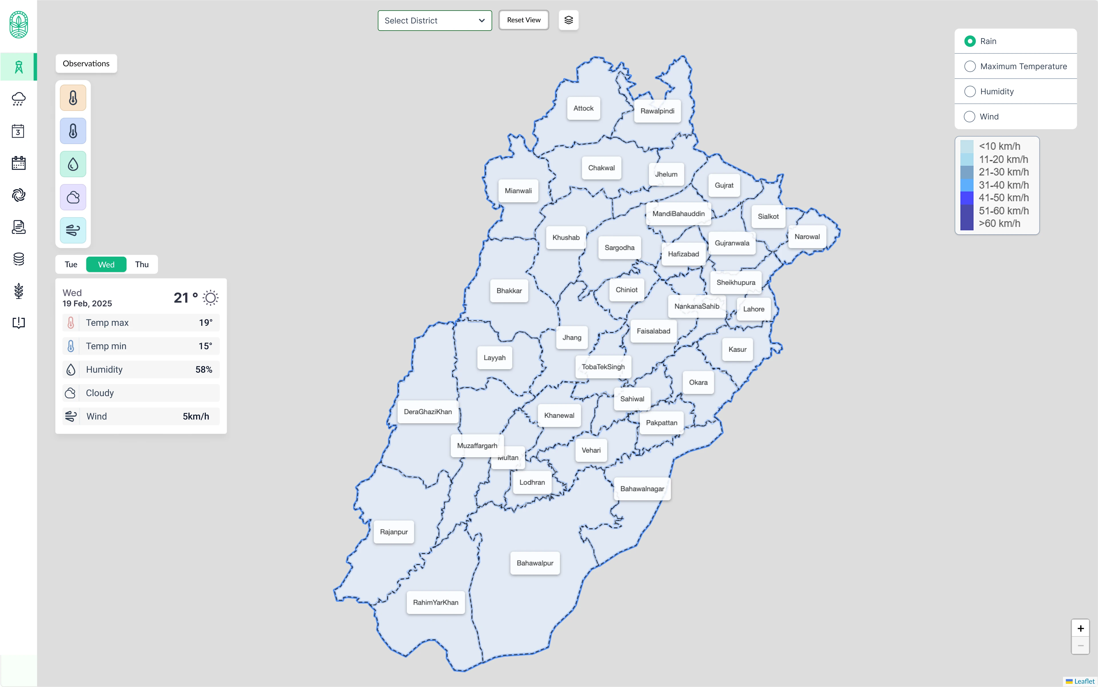 A modern decision support system designed to visualize real-time weather insights — from temperature trends to rainfall and humidity patterns.☁️📊