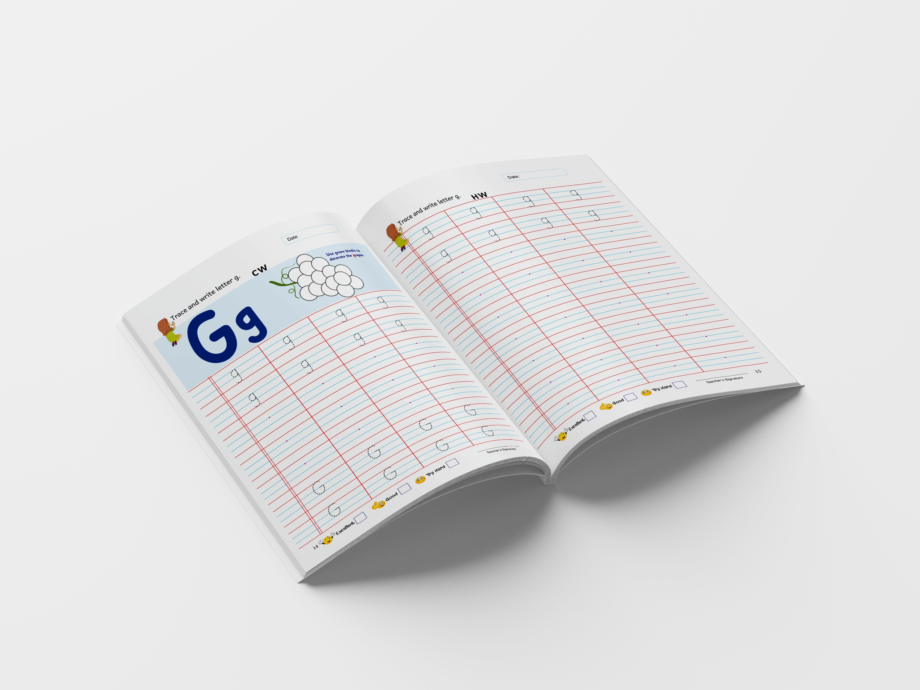 Designed a cursive handwriting workbook for young learners.