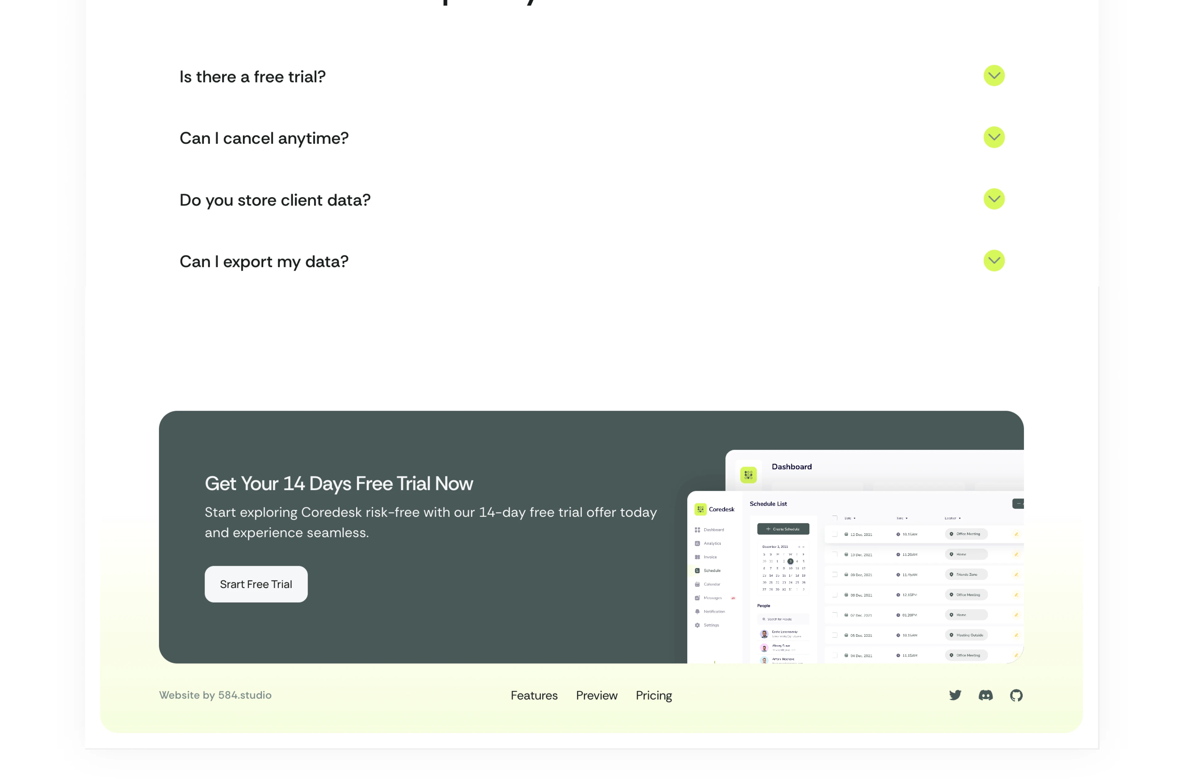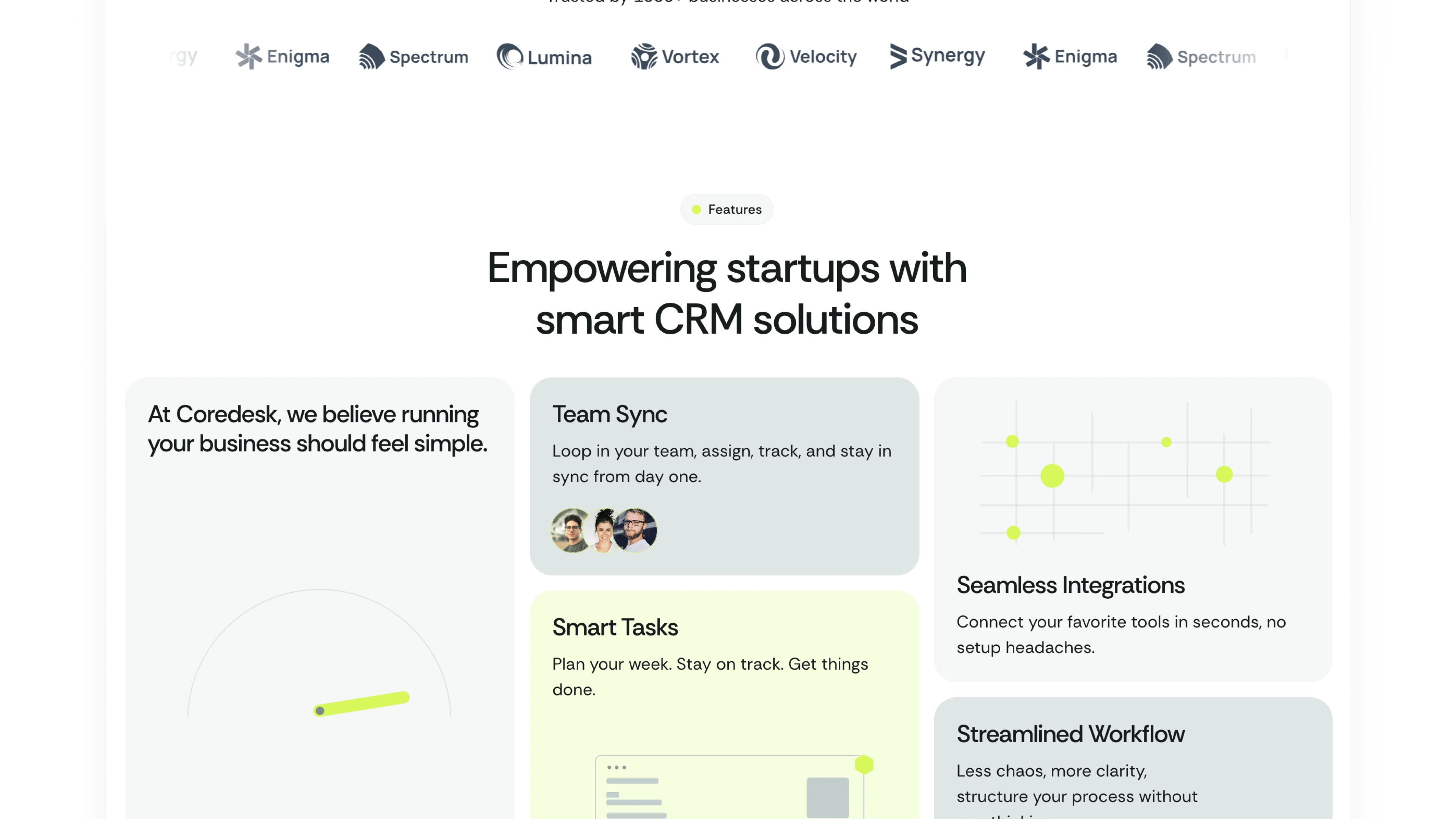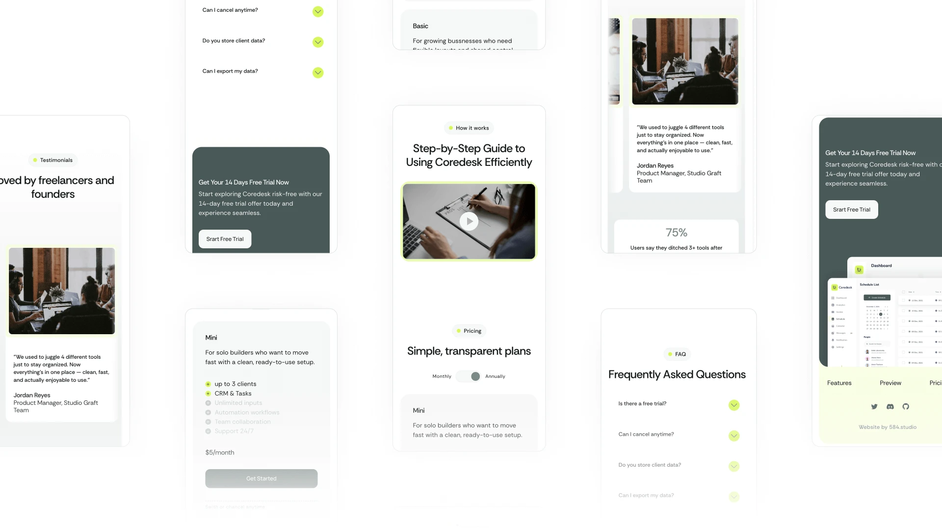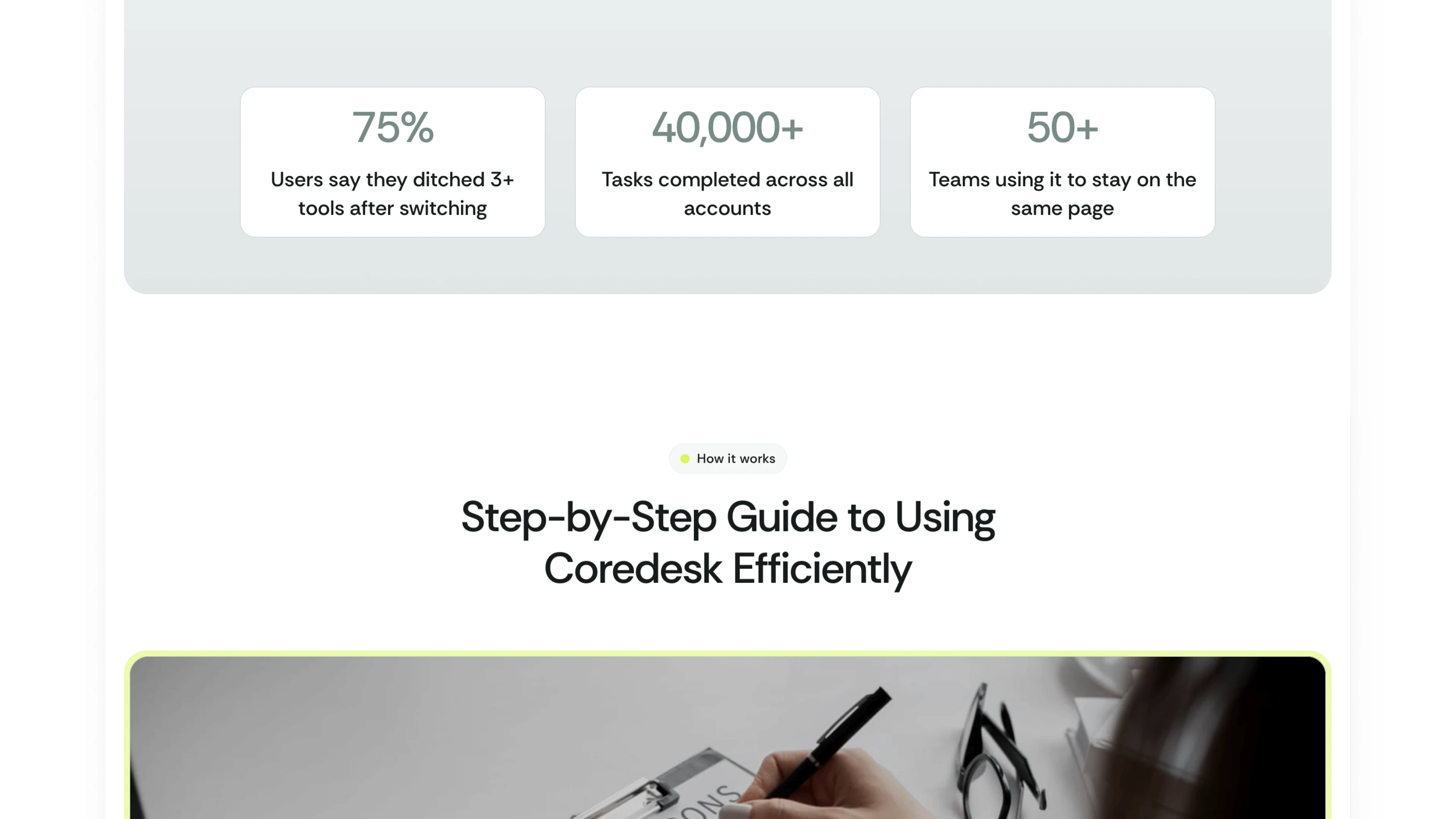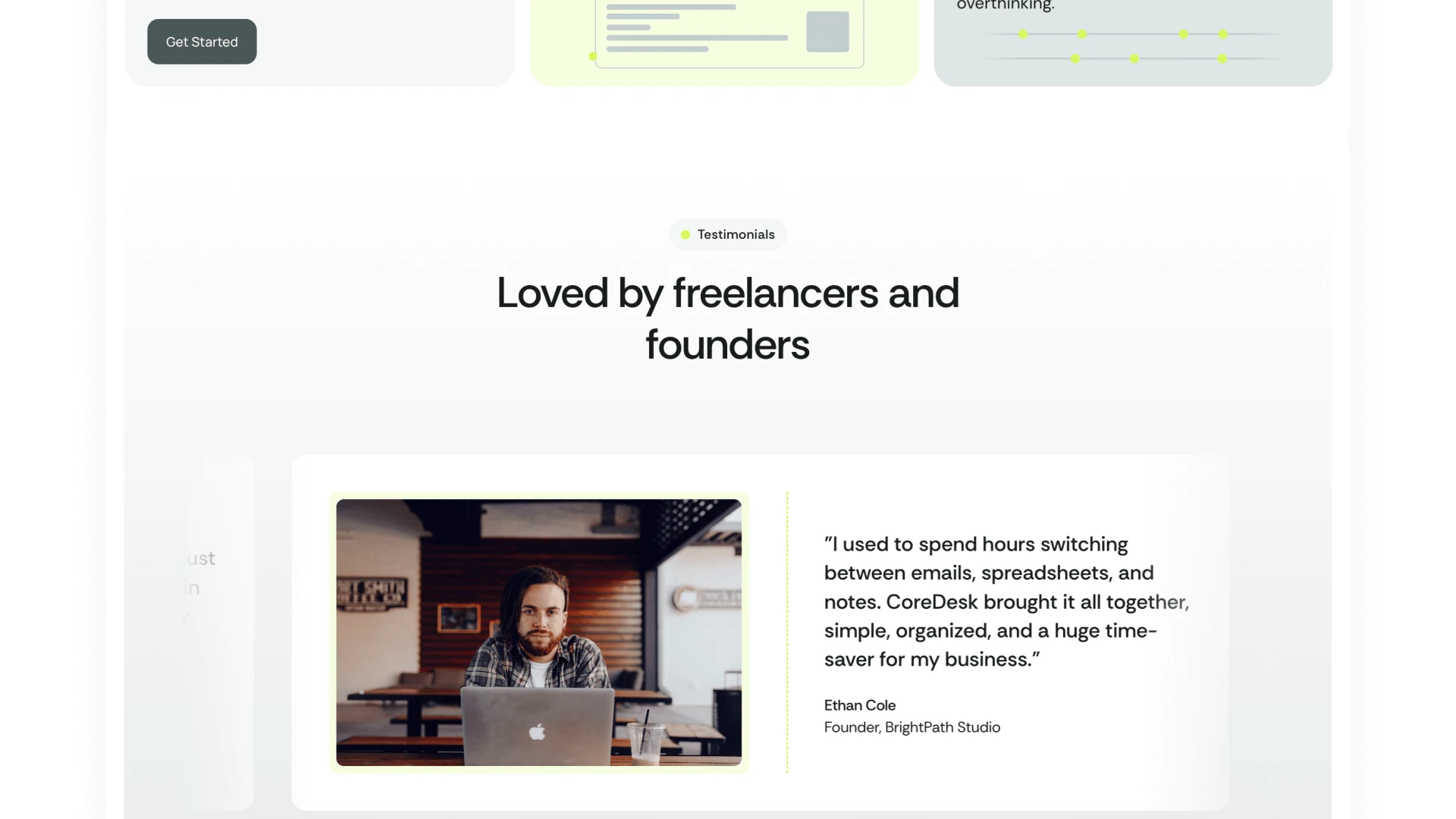 The website design needed to fully match the product’s visual identity, acting as a direct extension of the platform itself. It had to be minimal, fast, and focused, clearly presenting the key benefits without unnecessary distractions. The goal was to guide visitors straight to trying the free trial, removing extra steps and keeping the user’s attention on what CoreDesk does best.
