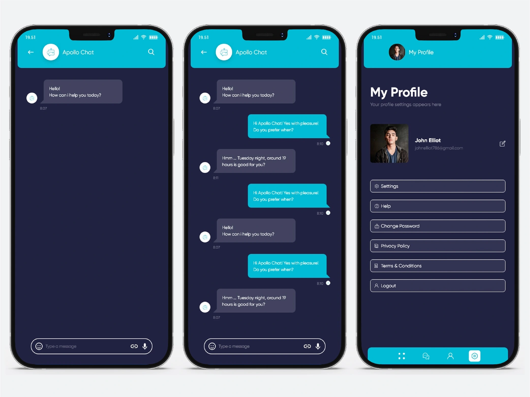 ApolloChat is an AI-based medical app I designed from scratch focused on making healthcare communication smarter and more personal for patients. I started this project with two main design concepts and built out a few sample screens to test the direction. After reviewing both options, the client selected the one that best matched their vision. From there, I completed the full UI flow and designed a simple, professional logo that tied the whole brand together.