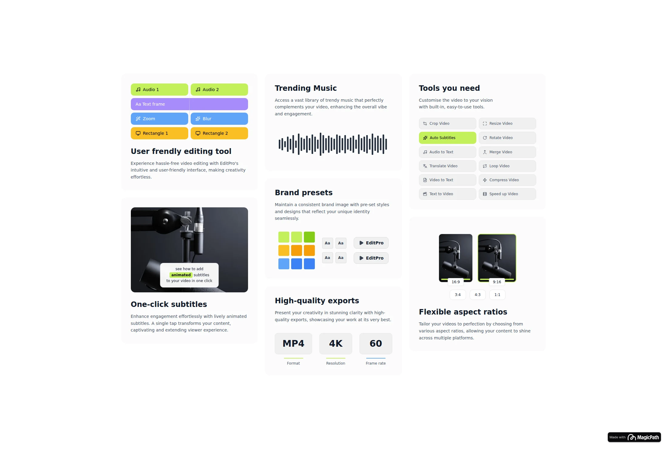 Created a collection of beautiful bento grid designs with multiple styles and layouts using MagicPathAI.