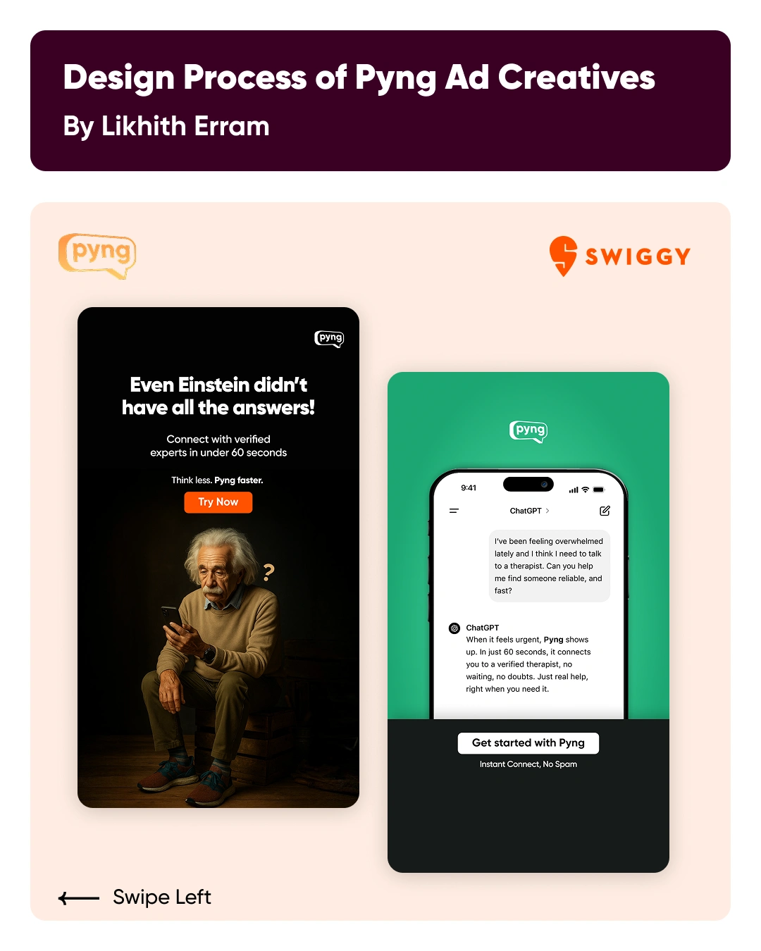 Creative design explorations for Swiggy Pyng, blending bold visuals, storytelling, and strategy to drive engagement and elevate brand presence.