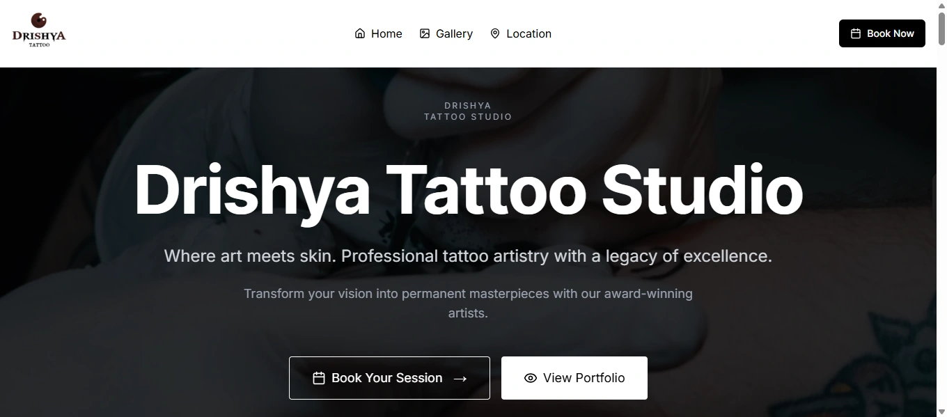 Custom-made booking website for Drishya Tattoo studio.