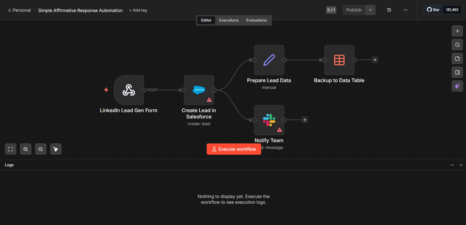 Built AI-powered lead automation connecting LinkedIn forms to Salesforce CRM with instant Slack notifications. Zero manual work. 100% automated lead capture.