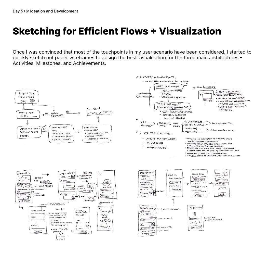 Hand-sketched flows ensured easy use. User-tested prototypes refined the experience, creating a meaningful app from concept to prototype.