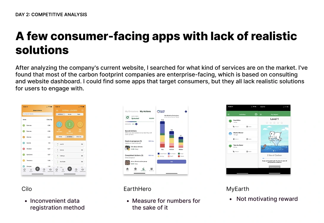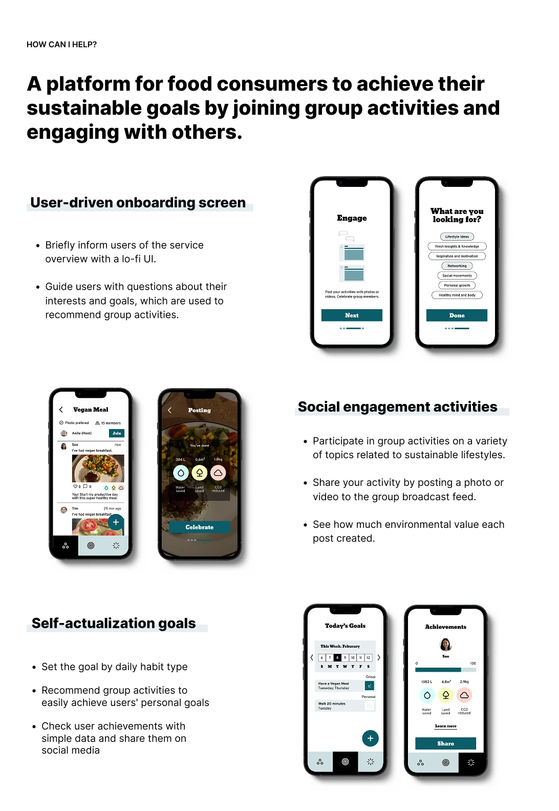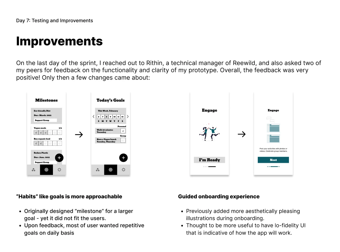 For Rewild, a sustainability app, we analyzed competitors, validated user needs, and designed intuitive onboarding, social activities, and goal-setting.