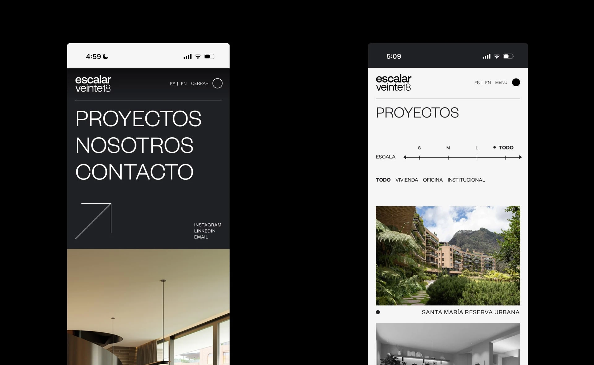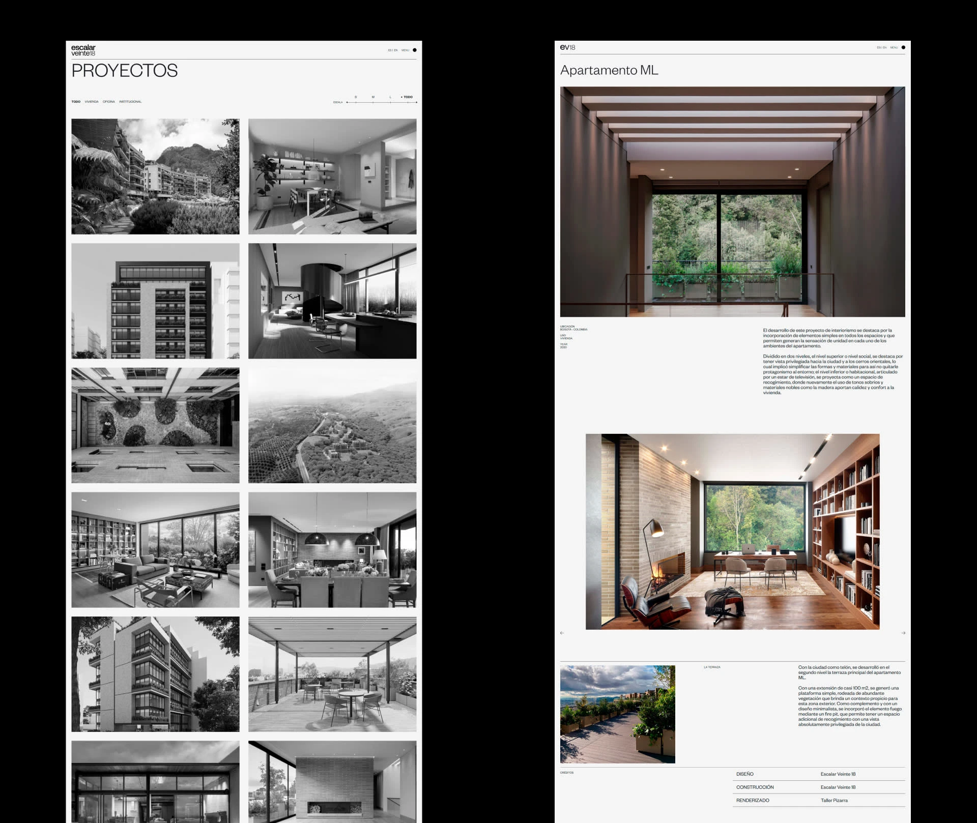 Escalar Veinte 18, Bogotá-based architecture and interior design firm, continues a 30+ year legacy from Escalar Gerencia Inmobiliaria. Specializing in residential and corporate projects, they work from interiors to urban scale, always focusing on the finest details. This Webflow website conceptually plays with scale through dynamic visual compositions. Photography takes center stage, enhanced by interactions and animations creating unique moments throughout the user journey.