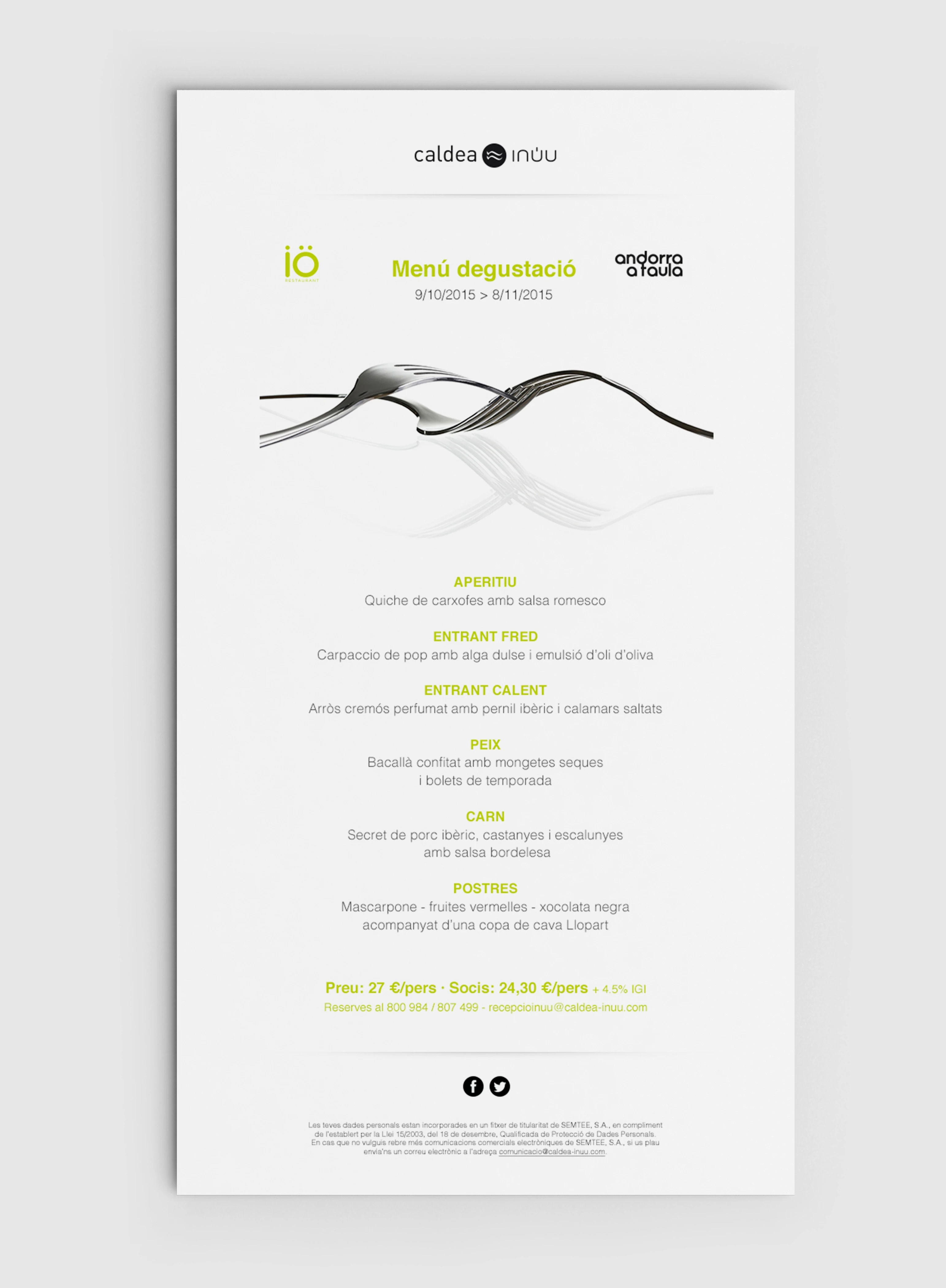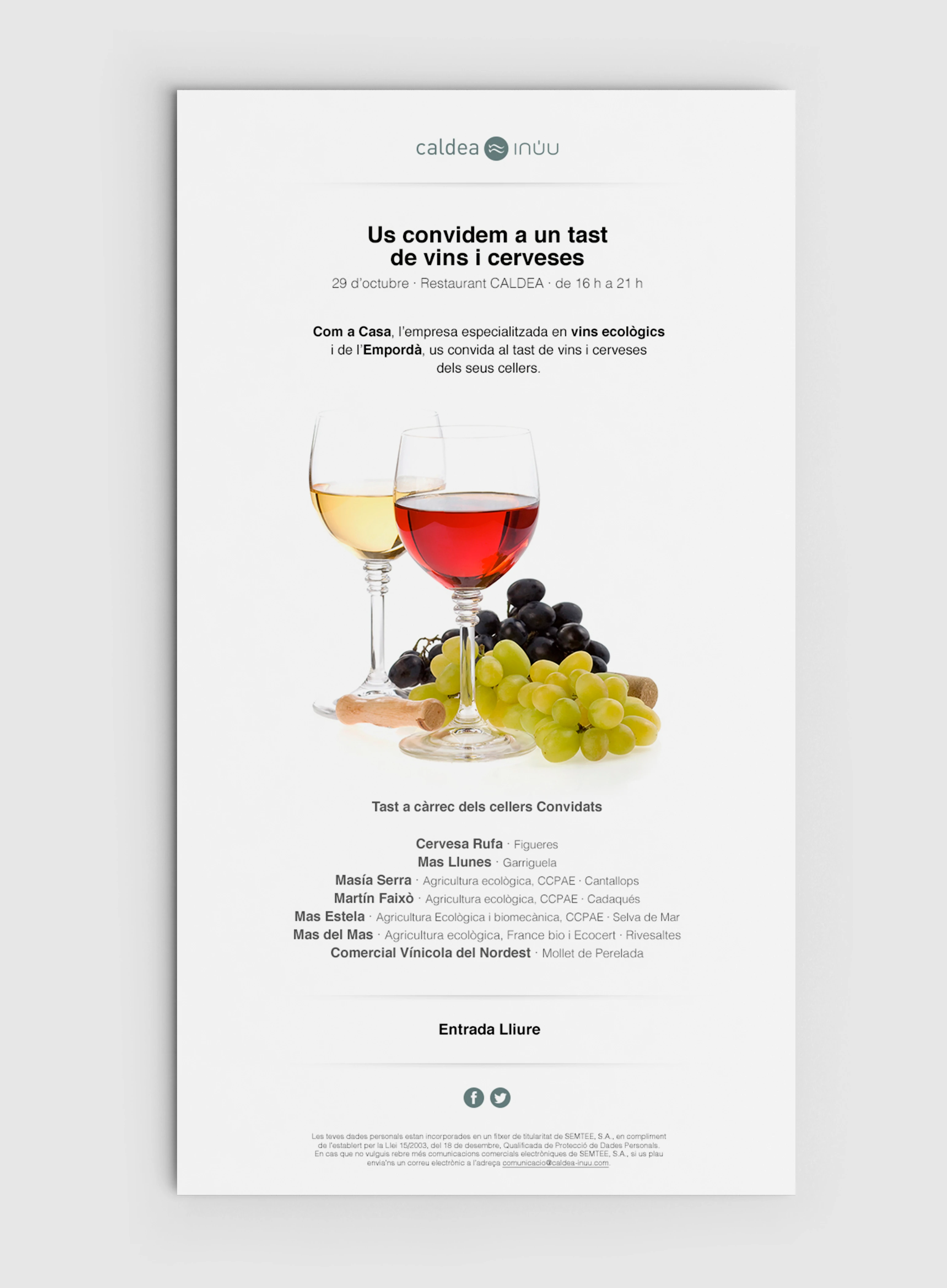 Newsletters design (not programming) for Wow! Comunicació. Based on brand and communication guidelines. Client: CALDEA-INÚU.