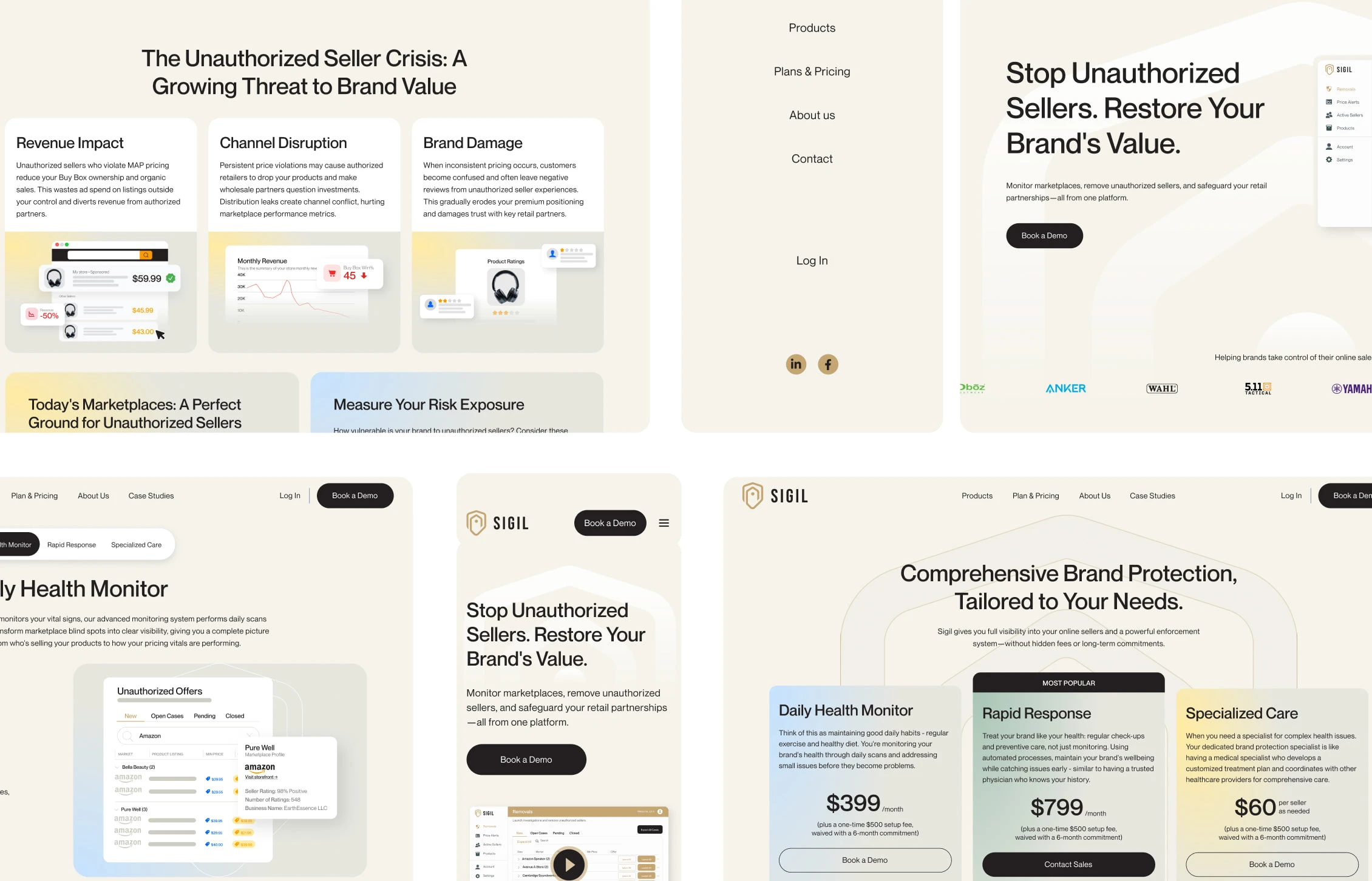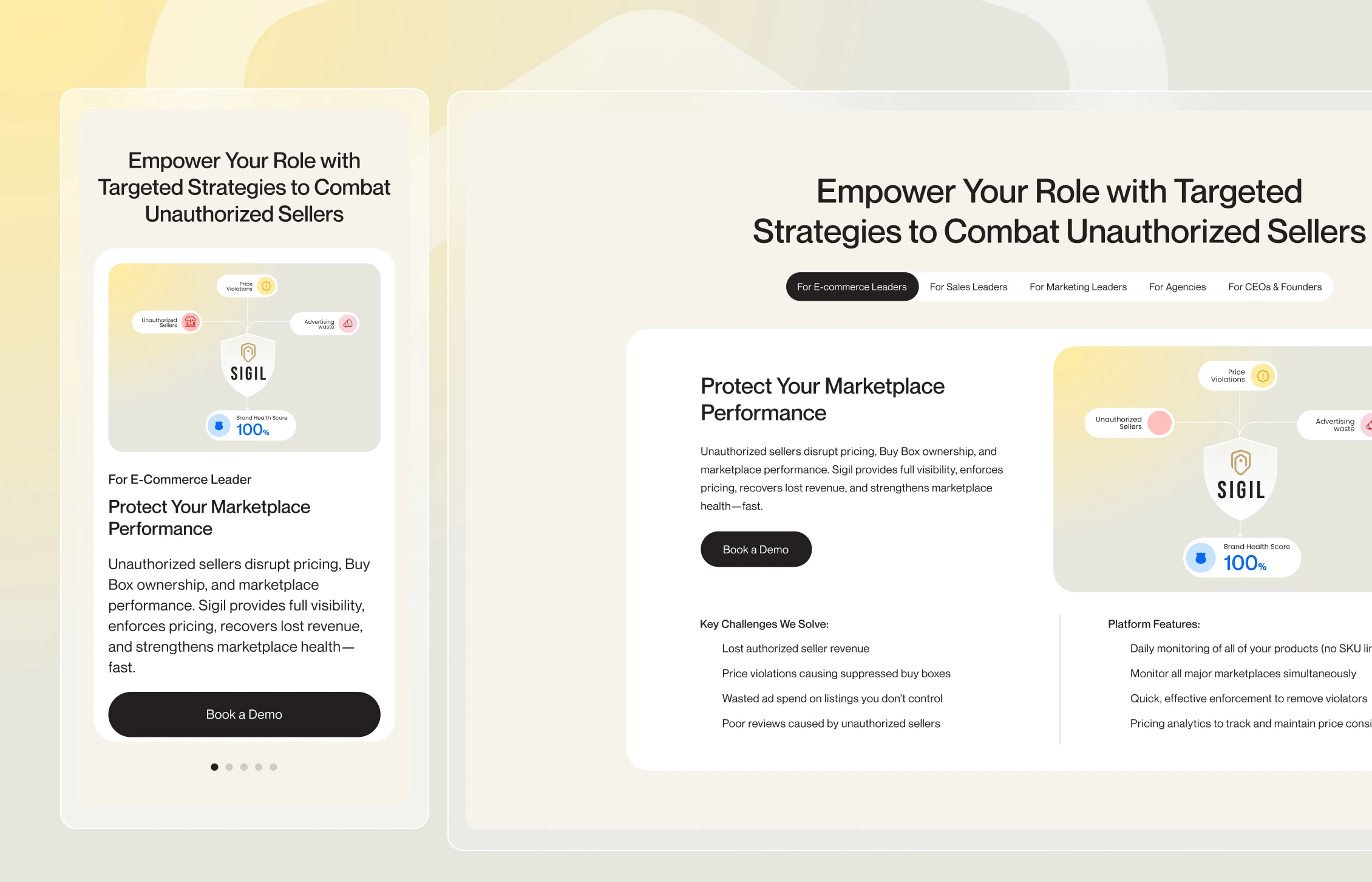 Every detail reinforces reliability and intelligence, from structured content flow to minimal motion design. Sigil now stands as a trusted digital authority in brand enforcement a partner, not just a platform.