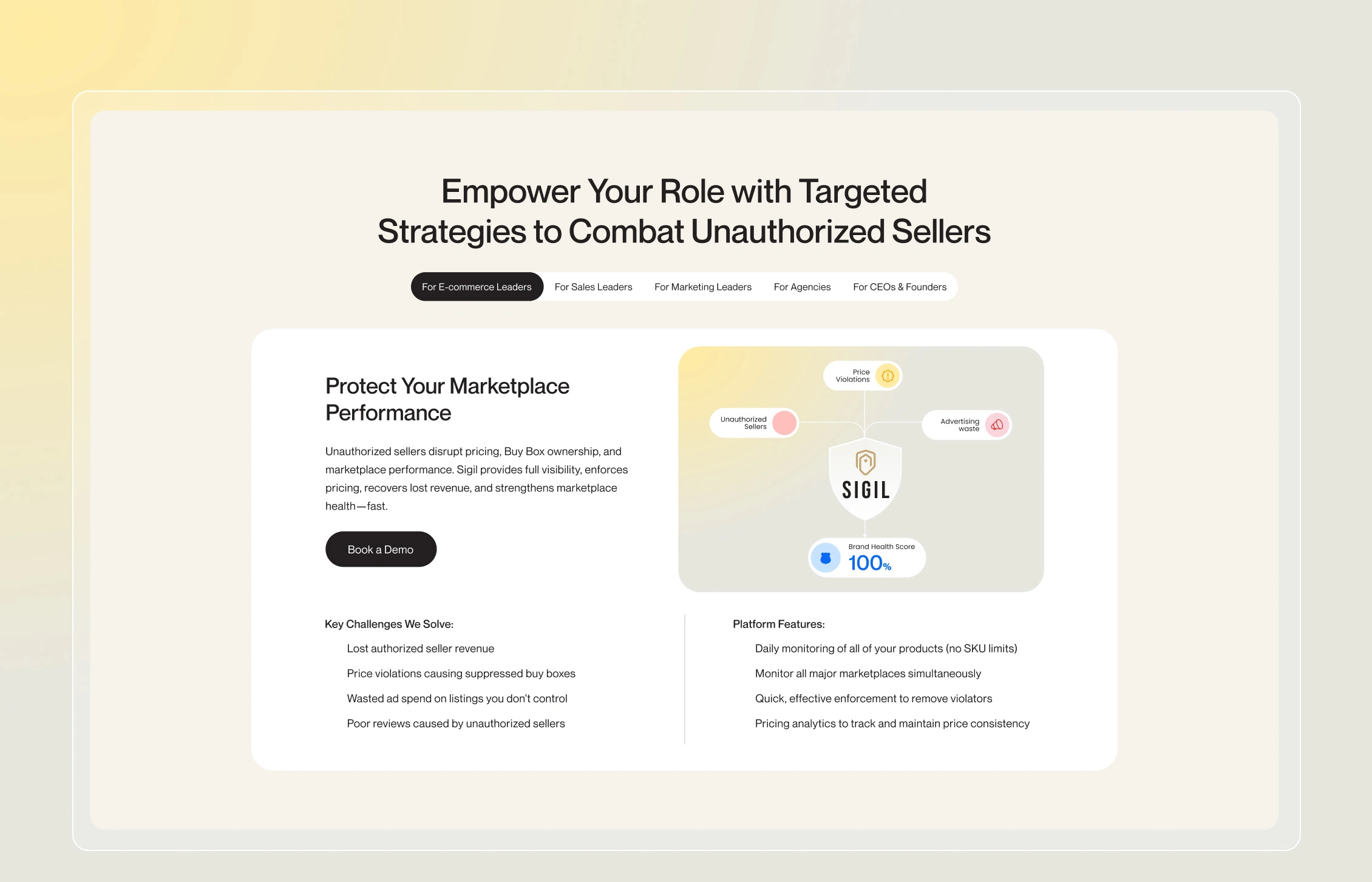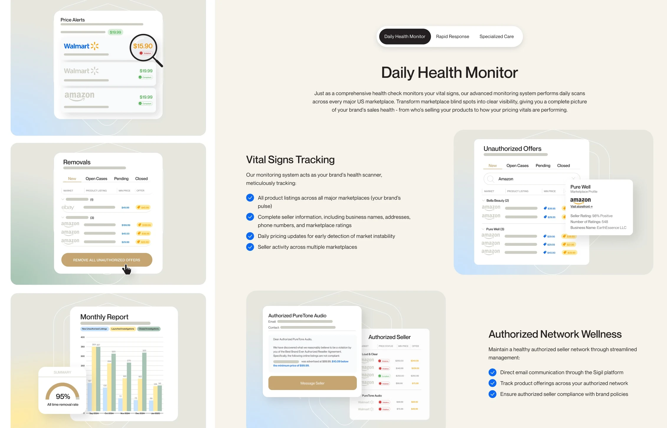 Sigil safeguards global brands from unauthorized sellers and grey-market activity by protecting reputation, revenue, and customer trust across major online marketplaces in the United States.
