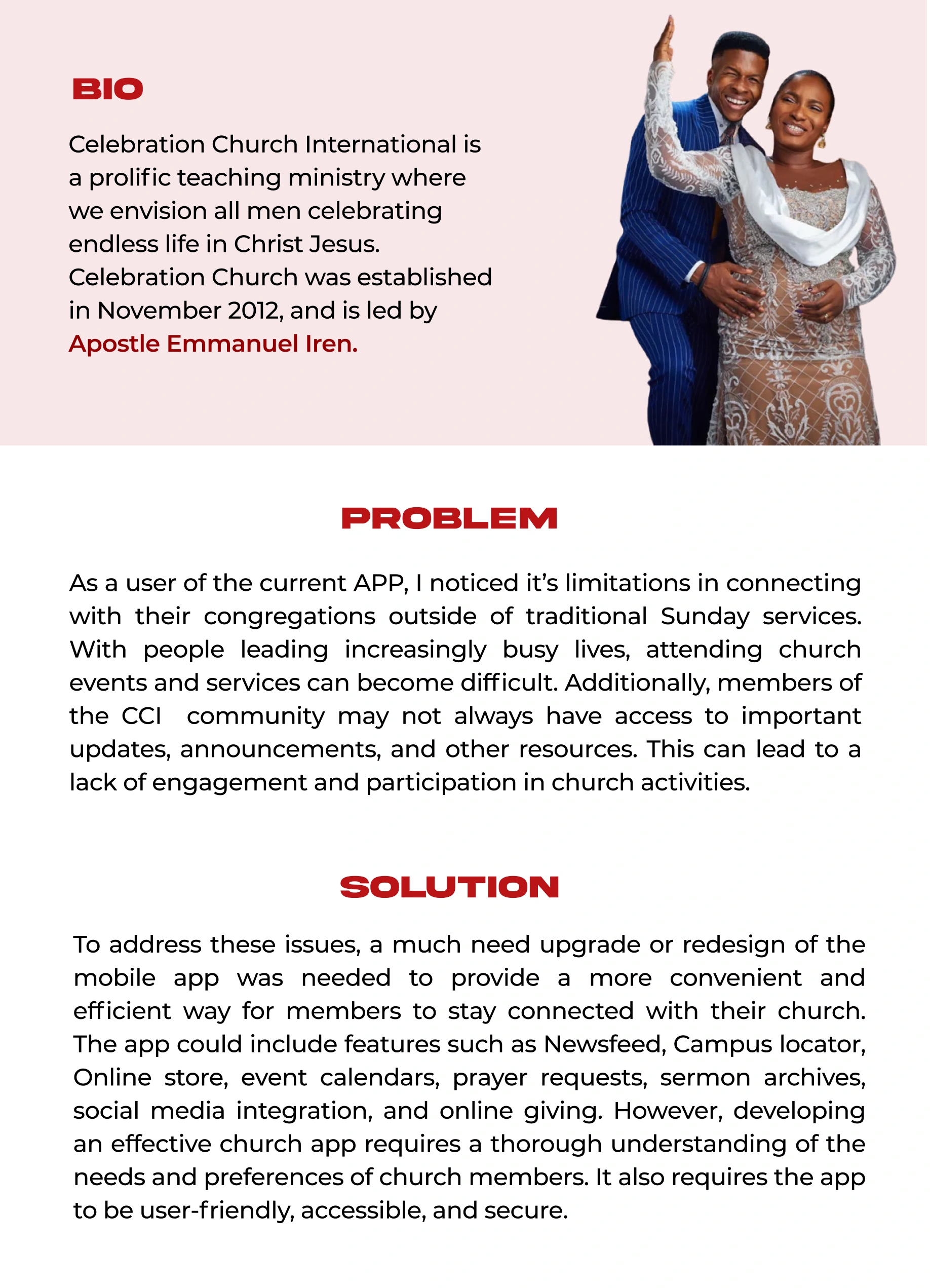 Celebration church App redesign after finding out some gaps. Take a quick look at my design thinking.