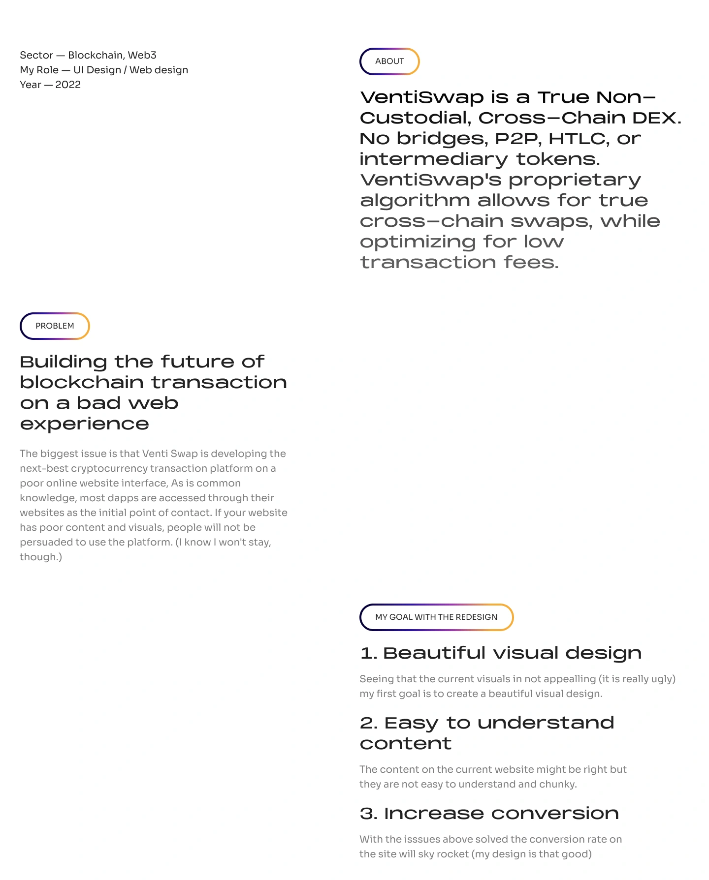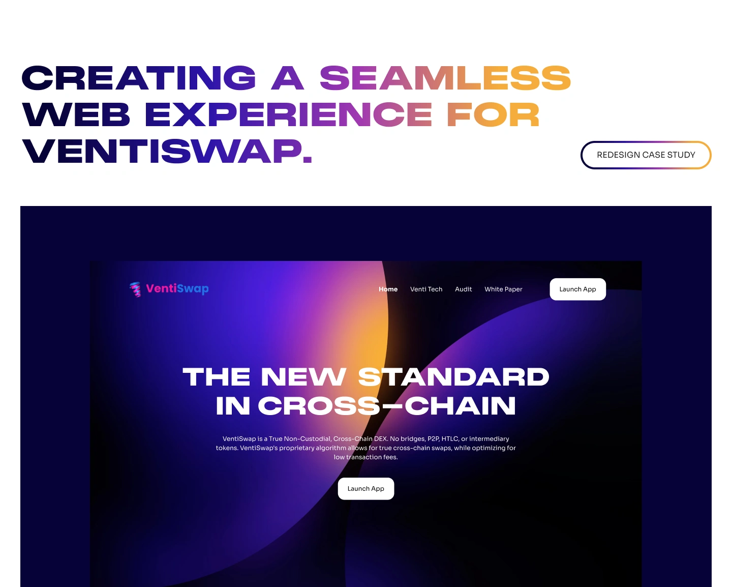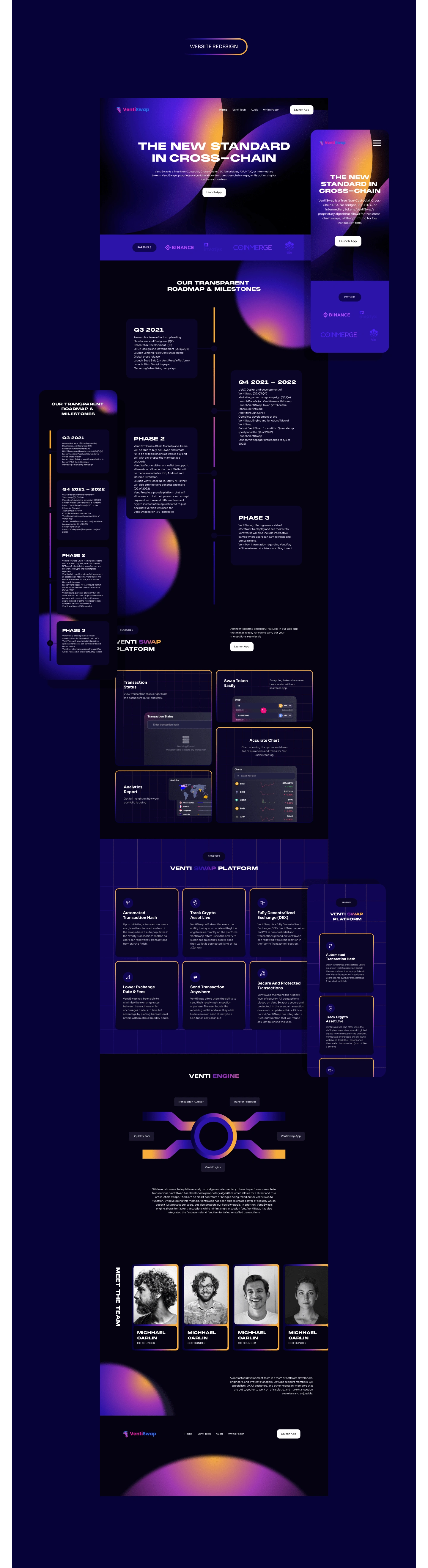 Website redesign for VentiSwap a True Non-Custodial, Cross-Chain DEX. No bridges, P2P, HTLC, or intermediary tokens. VentiSwap's proprietary algorithm allows f…