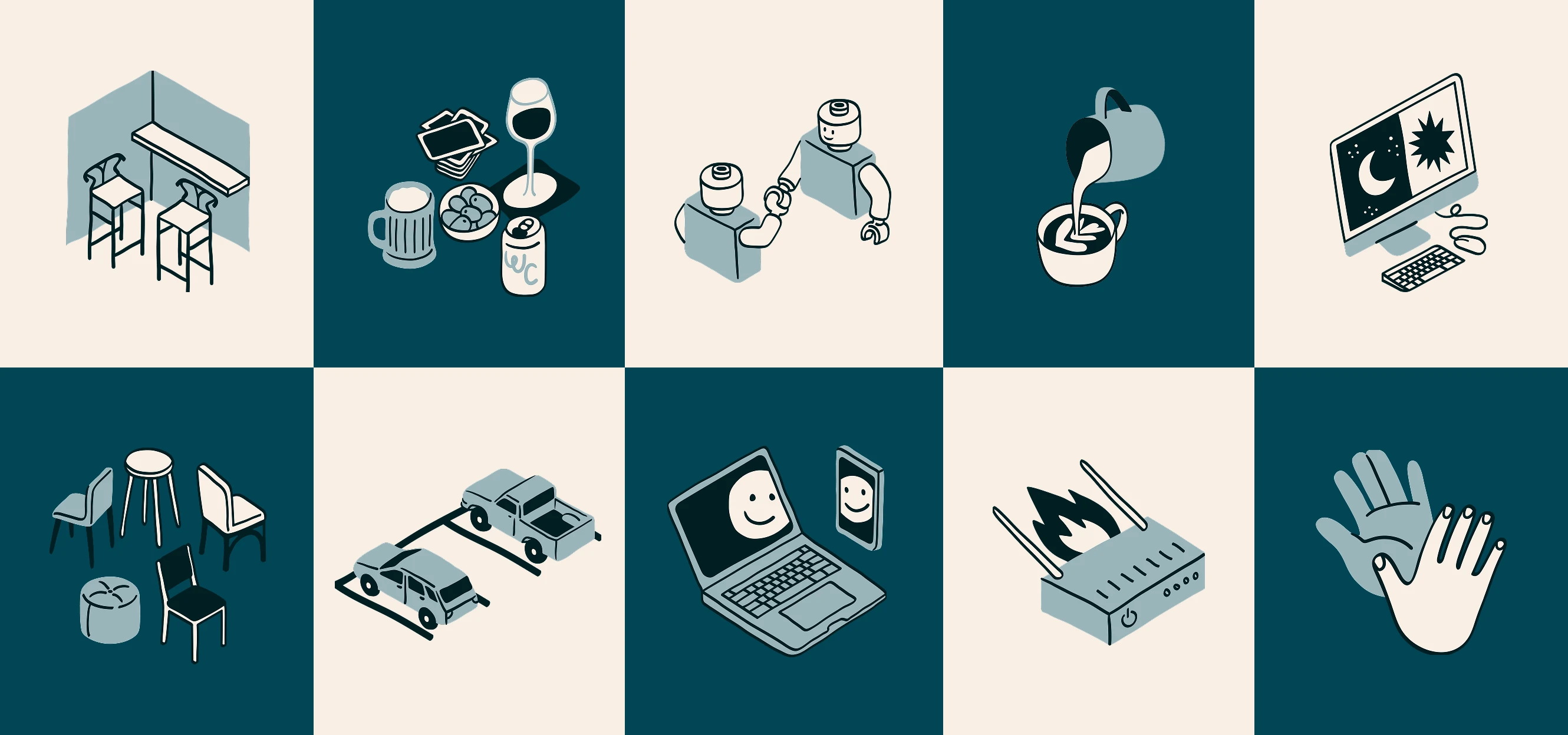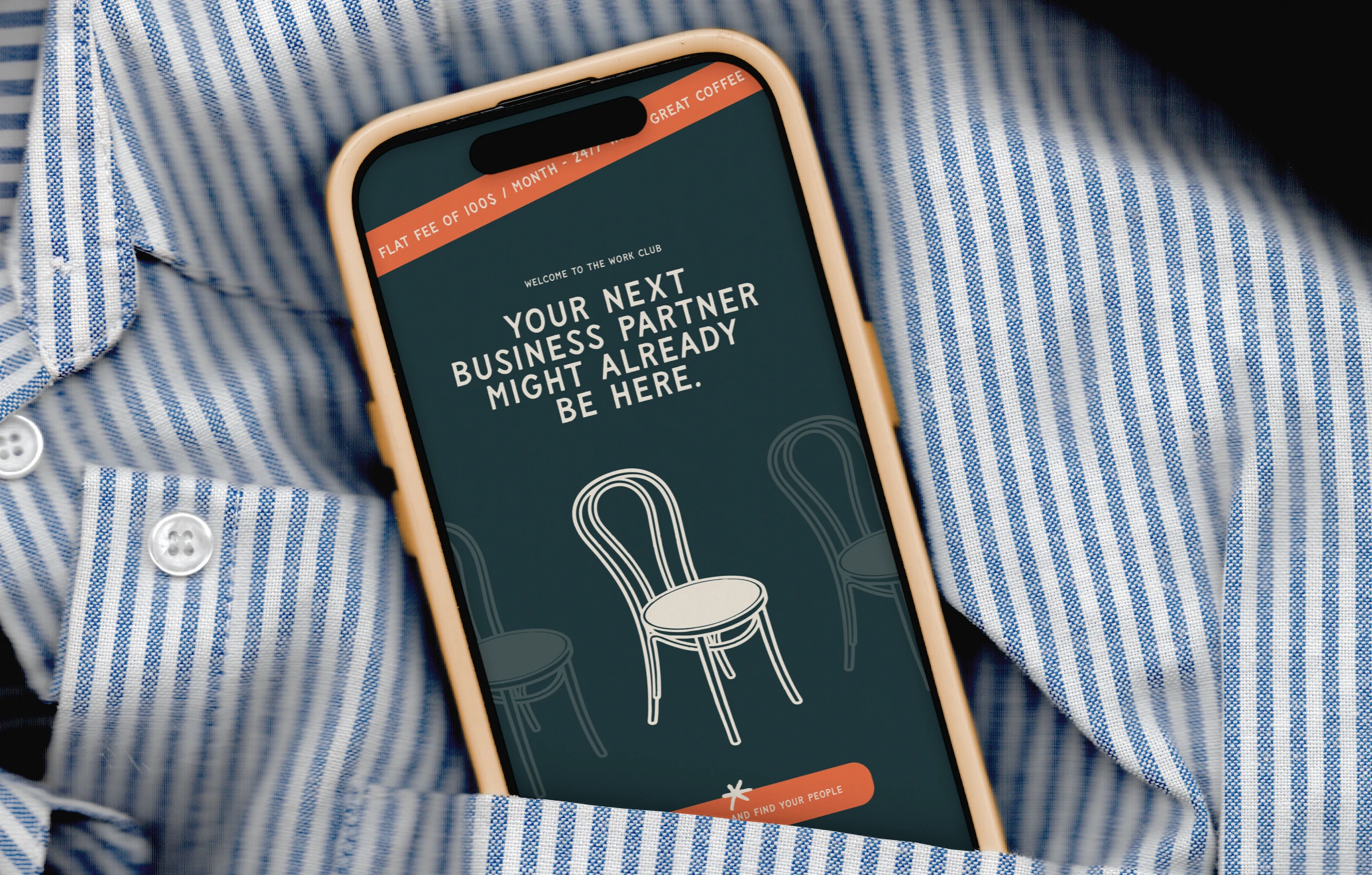 The creative concept drew from an unexpected source: the college club. Not networking events or open-plan tables, but the idea of a group of people who gather because they care about the same things — who belong to something because it means something to them. That sense of chosen community became the heartbeat of the brand. From strategy, we moved into a full brand identity and a custom illustration system — the illustrated chairs, the graphic language, the details that gave the brand its texture and personality. The client built their own website using the Brand Book and illustration assets we delivered, a testament to how clear and complete the system was.