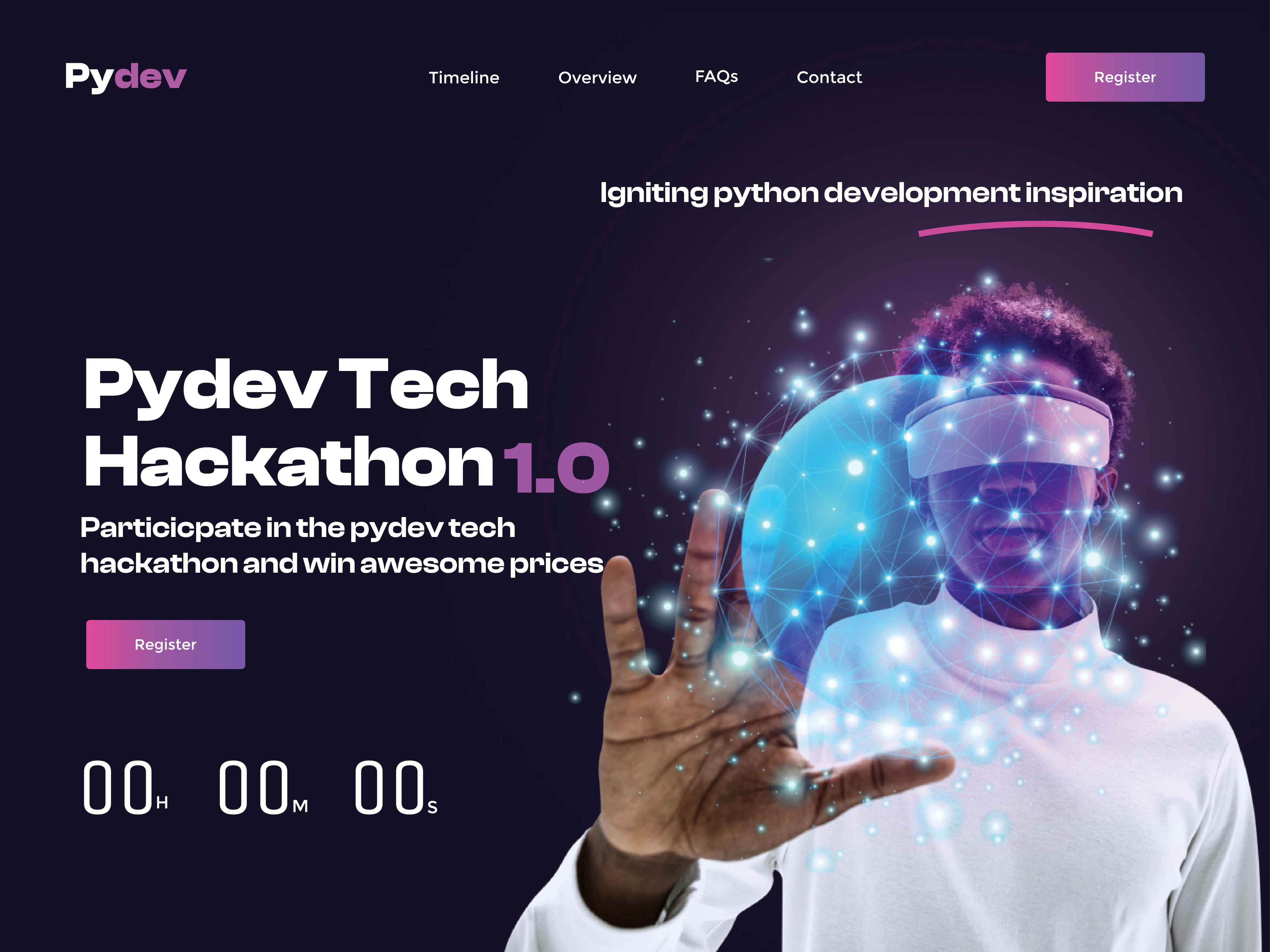 A landing page design for a tech event where python enthusiast showcase their skills and network with other professionals and experts