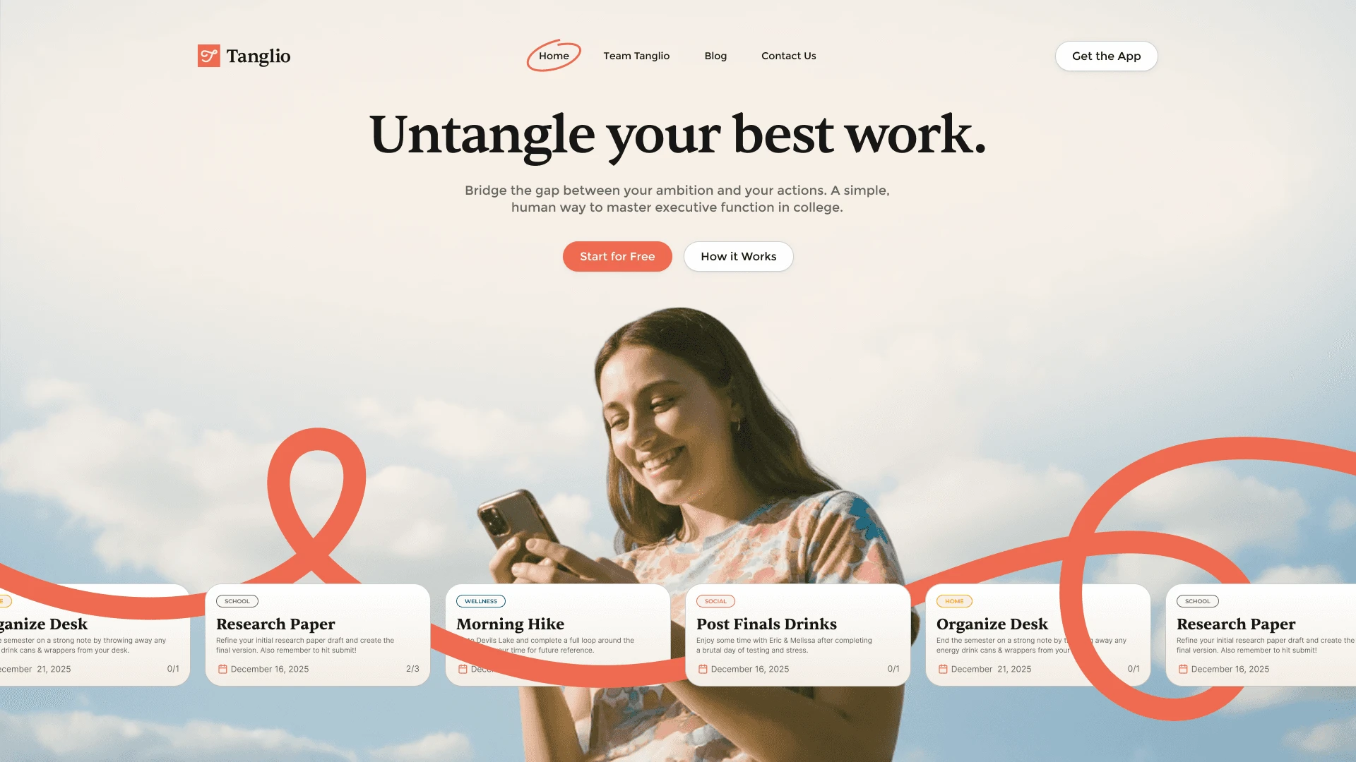 Tanglio is an executive functioning and coaching app built to help college and university students stay organized, manage their workload, and build strong academic habits. It gives students a simple way to track goals, stay focused, and move through each semester with confidence.