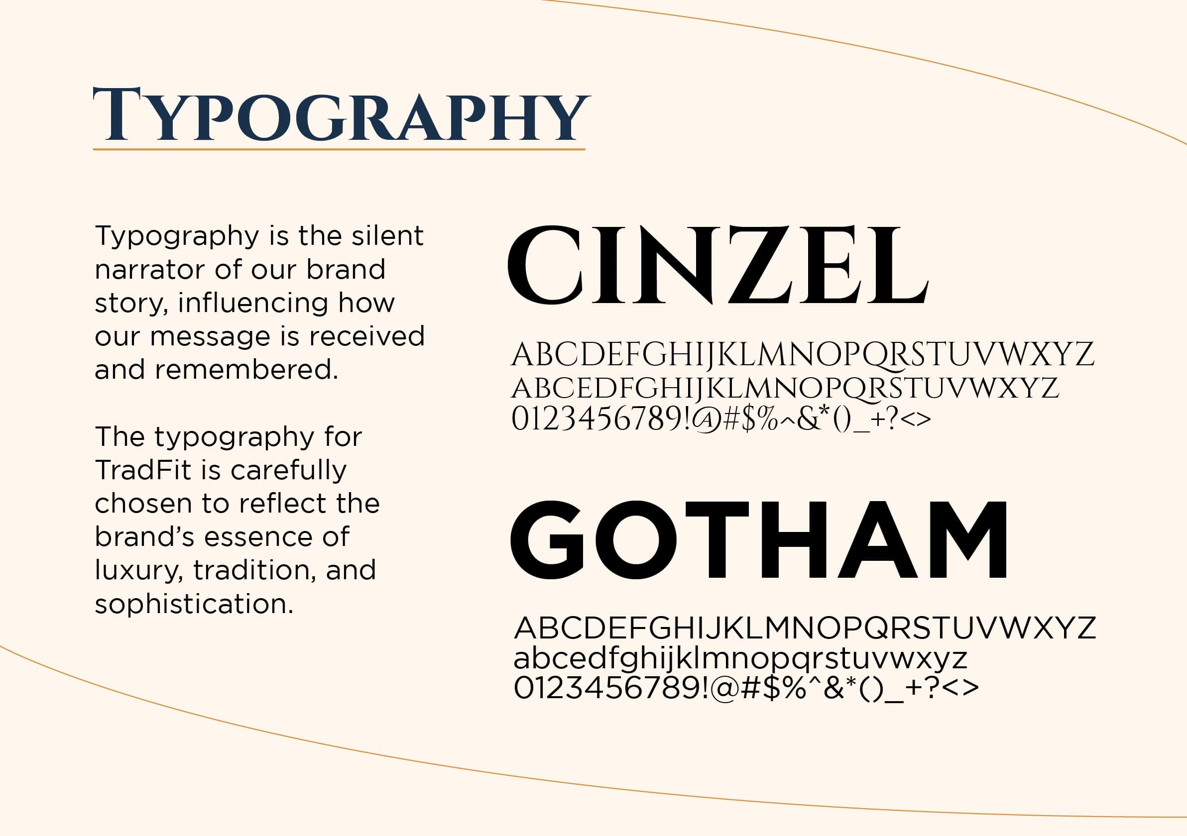 I chose Cinzel for its regal, traditional feel and paired it with Gotham for a clean, modern look, mirroring the brand's traditional-modern duality. The type system was established to guide clarity and hierarchy in brand messaging.