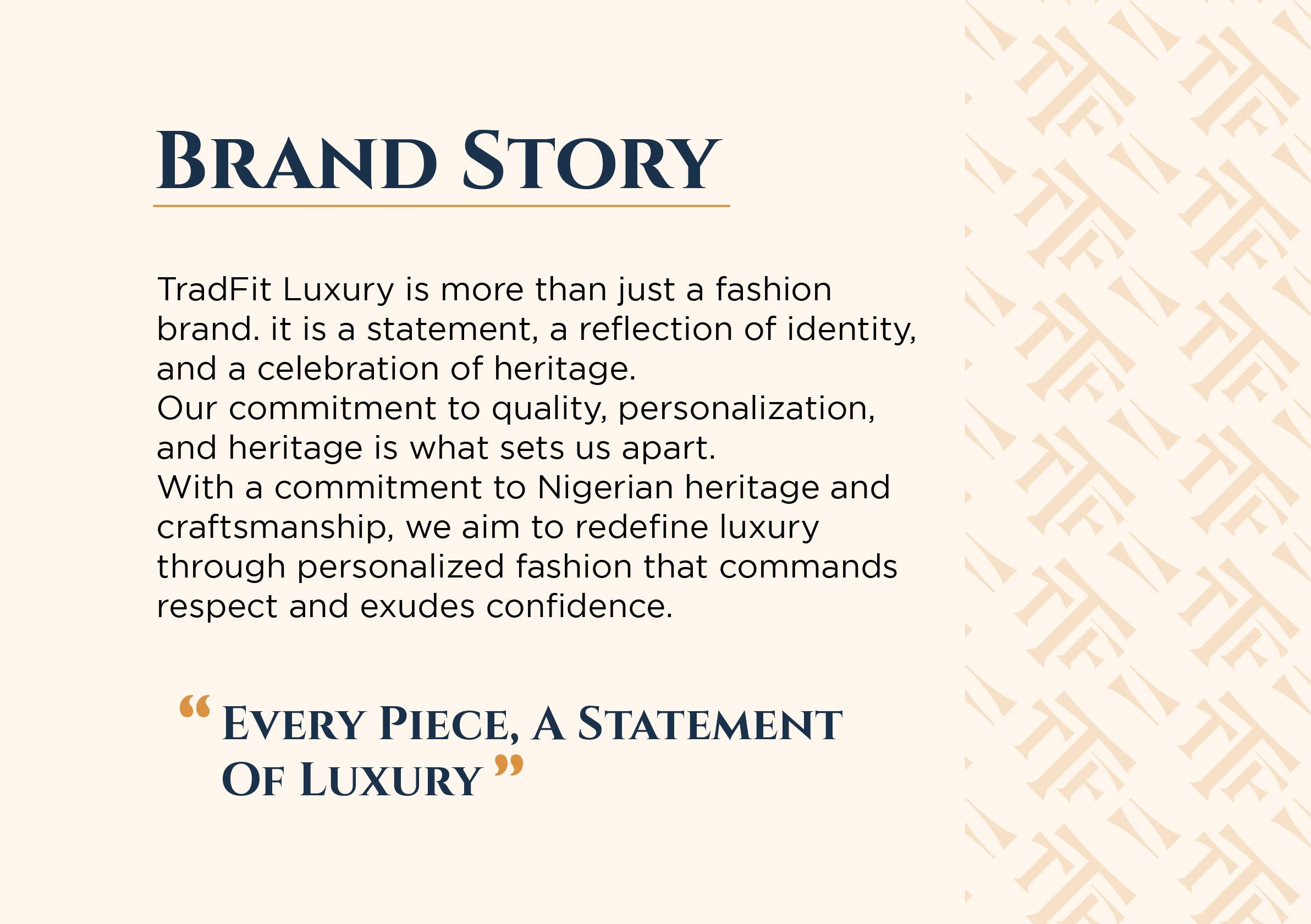 I rebranded TradFit Luxury from a typical fashion brand to a brand with a focus on Nigerian heritage and premium fashion.