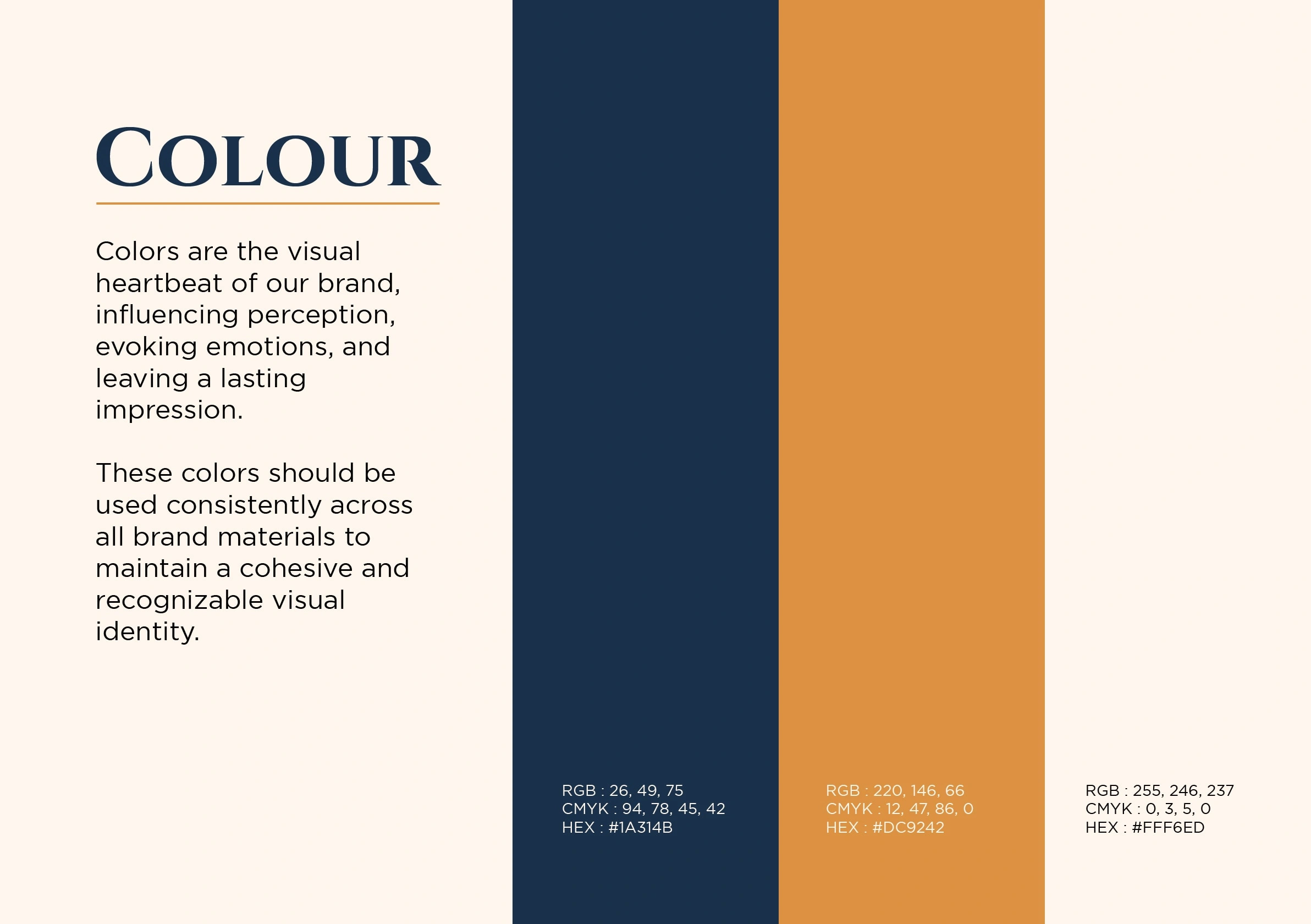 I selected navy blue for stability and depth, gold for prestige and heritage, and off-white for a soft, modern luxury aesthetic. Together, the palette communicates refined elegance with African inspiration.