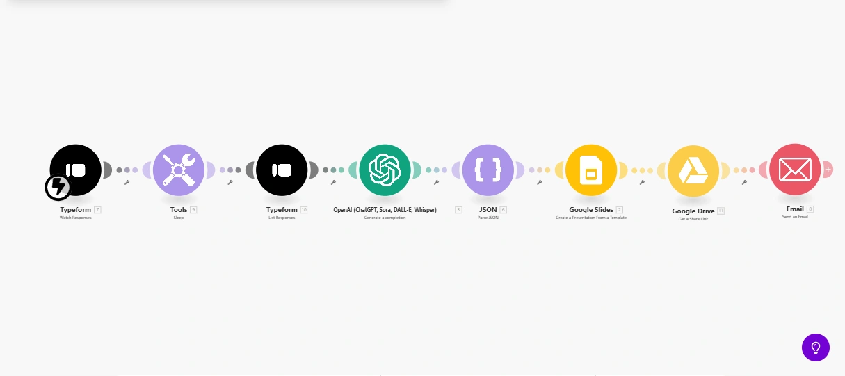 Automated lead gen system using Typeform, OpenAI & Make.com to capture, qualify, and convert leads 24/7 - boosting sales and eliminating missed opportunities.