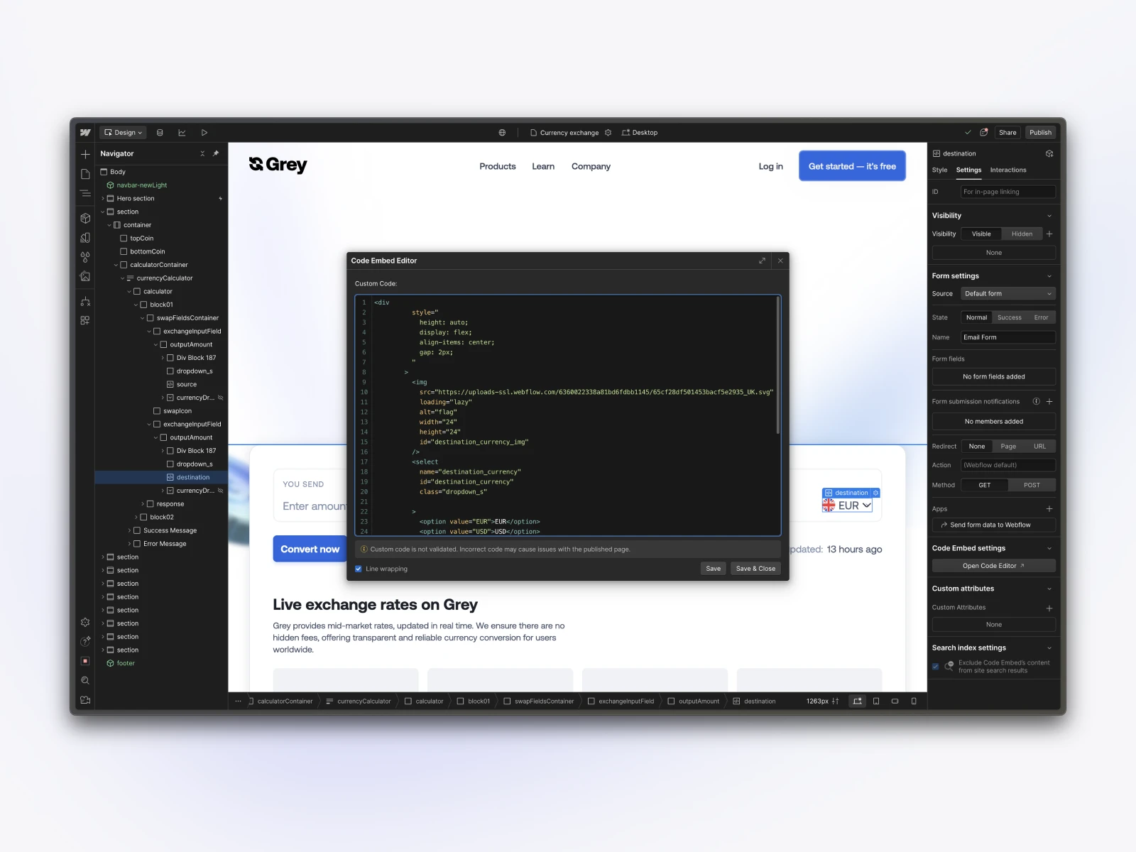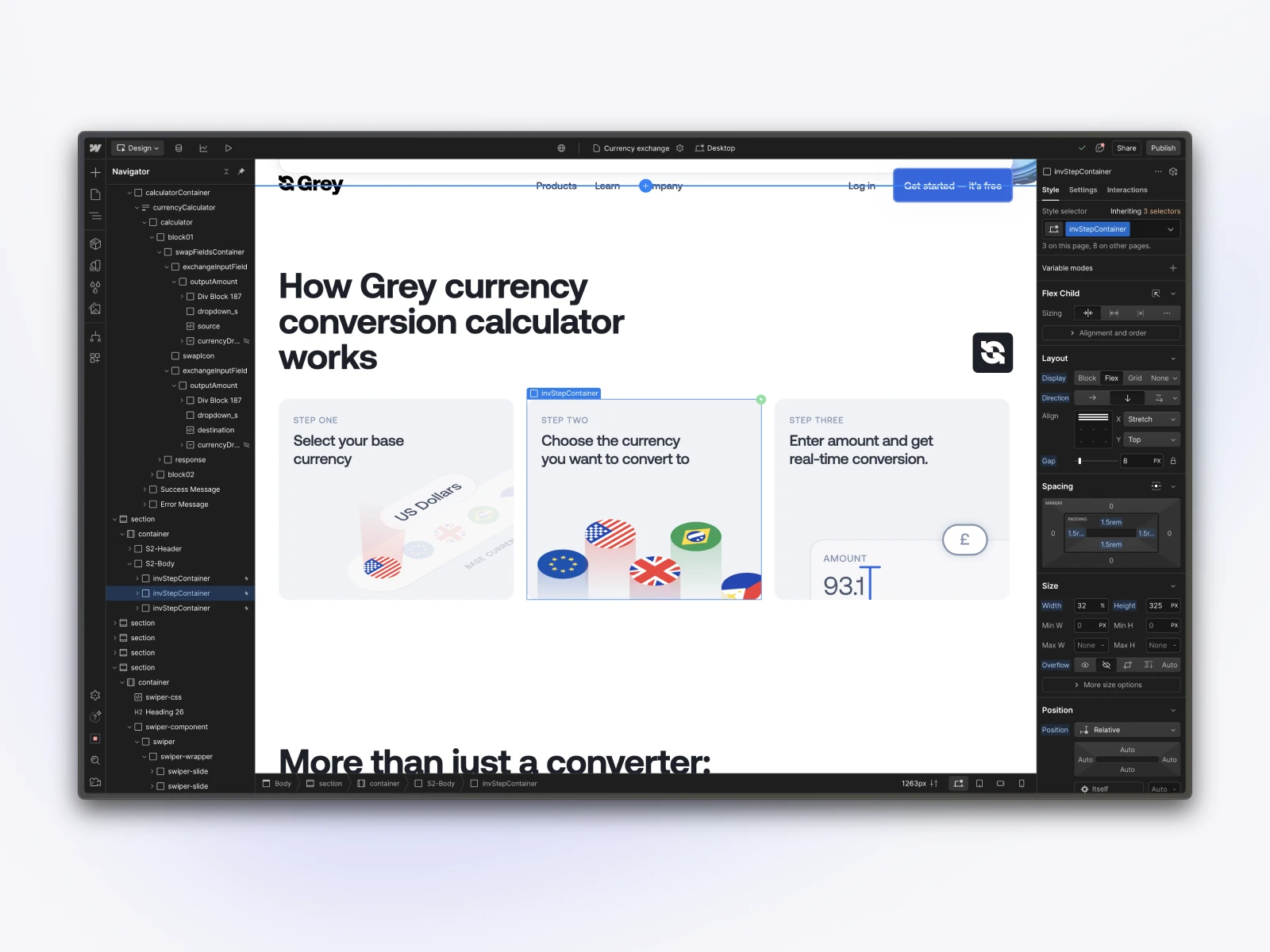 Designed and built Grey’s Currency Exchange page, improving user trust and engagement with real-time rates and a seamless, responsive Webflow experience.