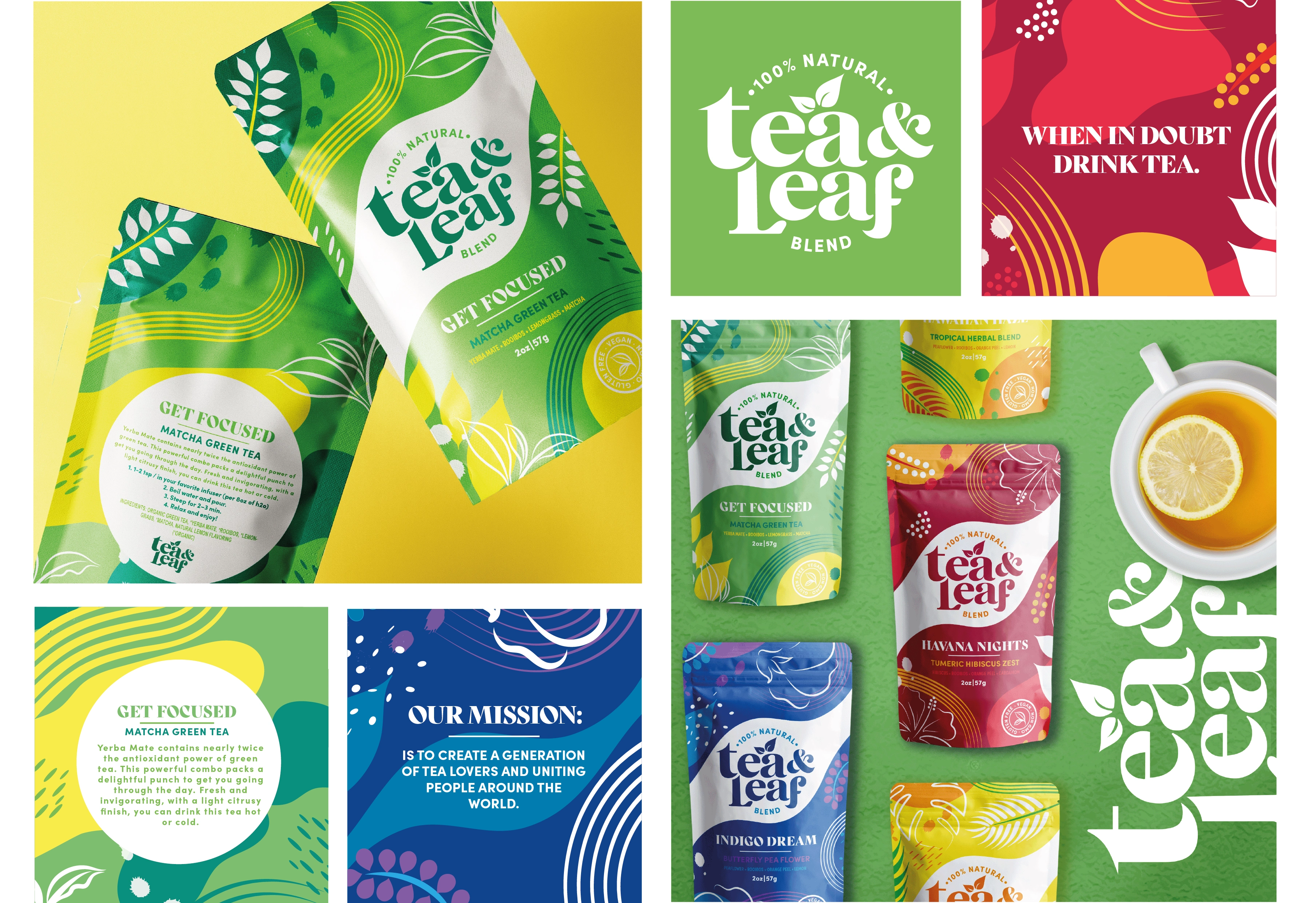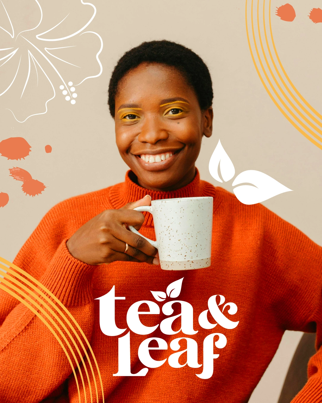 Tea and Leaf is a vibrant tea brand built around the idea that tea connects—people to nature, and people to each other. The brand's bold, bright packaging features expressive graphic shapes that abstractly represent leaves, flavour, and shared moments, capturing the harmony between the natural origins of tea and the warmth it brings to human connection.