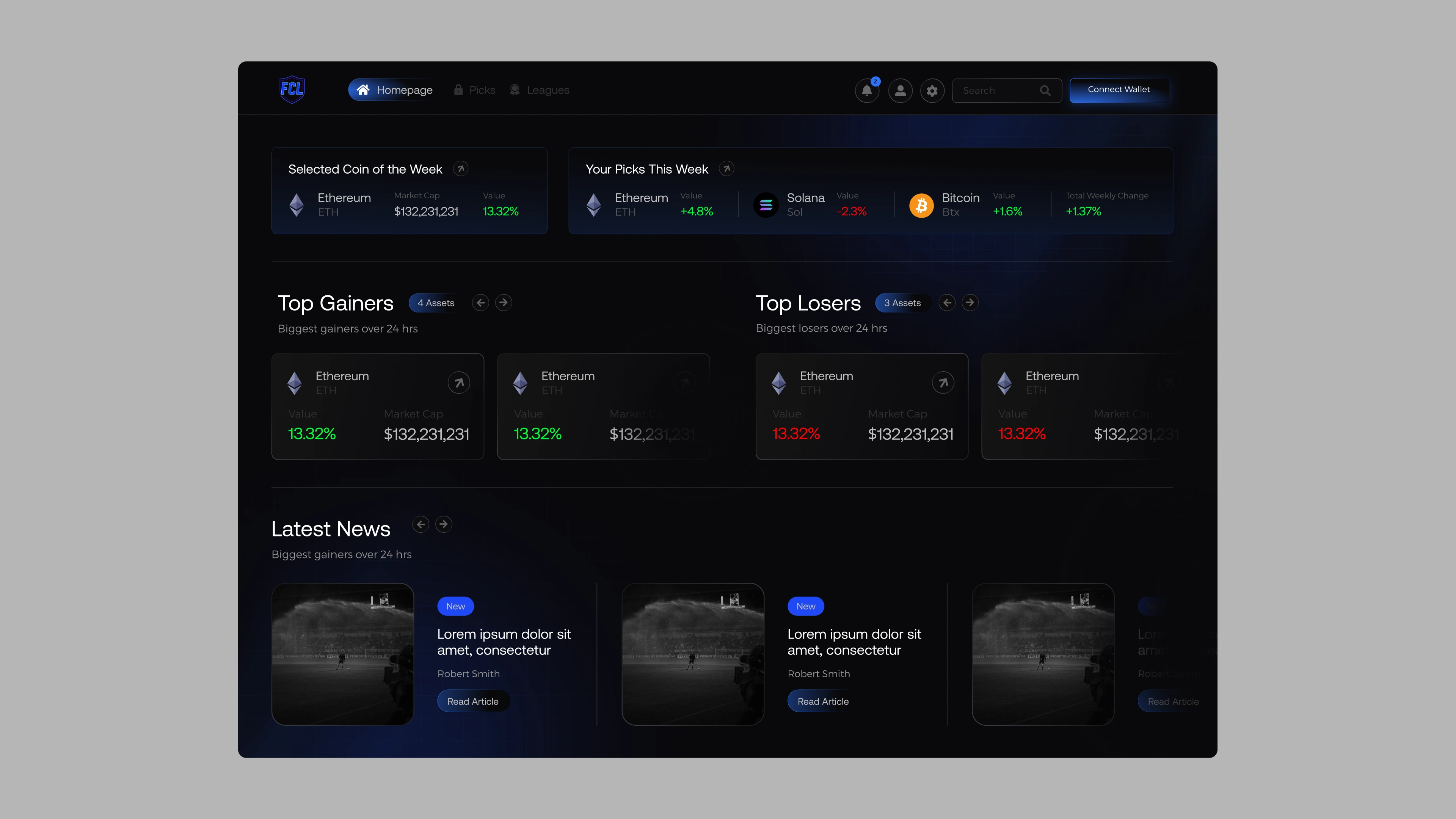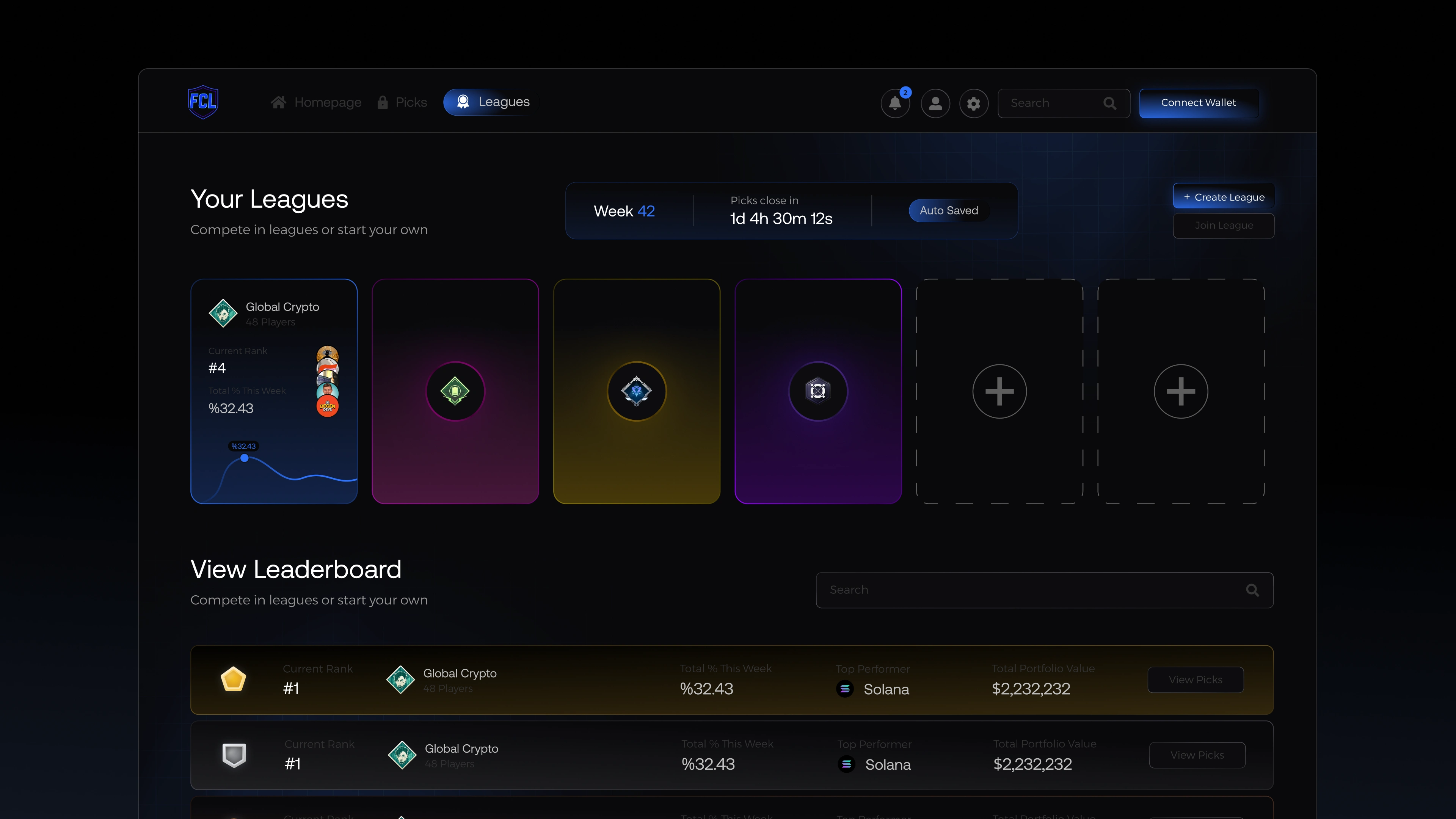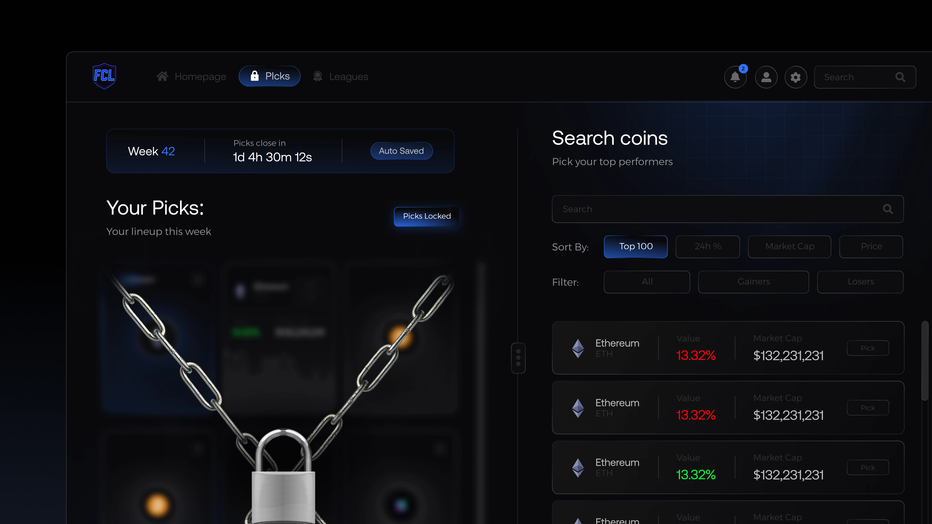 The challenge was designing a version 1 product that felt polished and launch-ready while capturing the high-energy, gamified experience users expect from a betting platform. I designed the full UI across web and mobile, building an interface that balanced a professional, techy aesthetic with the visual language of competitive gaming. The work covered core product flows including coin selection, leaderboards, and live market tracking, creating a cohesive experience that felt exciting to use without sacrificing clarity or trust.