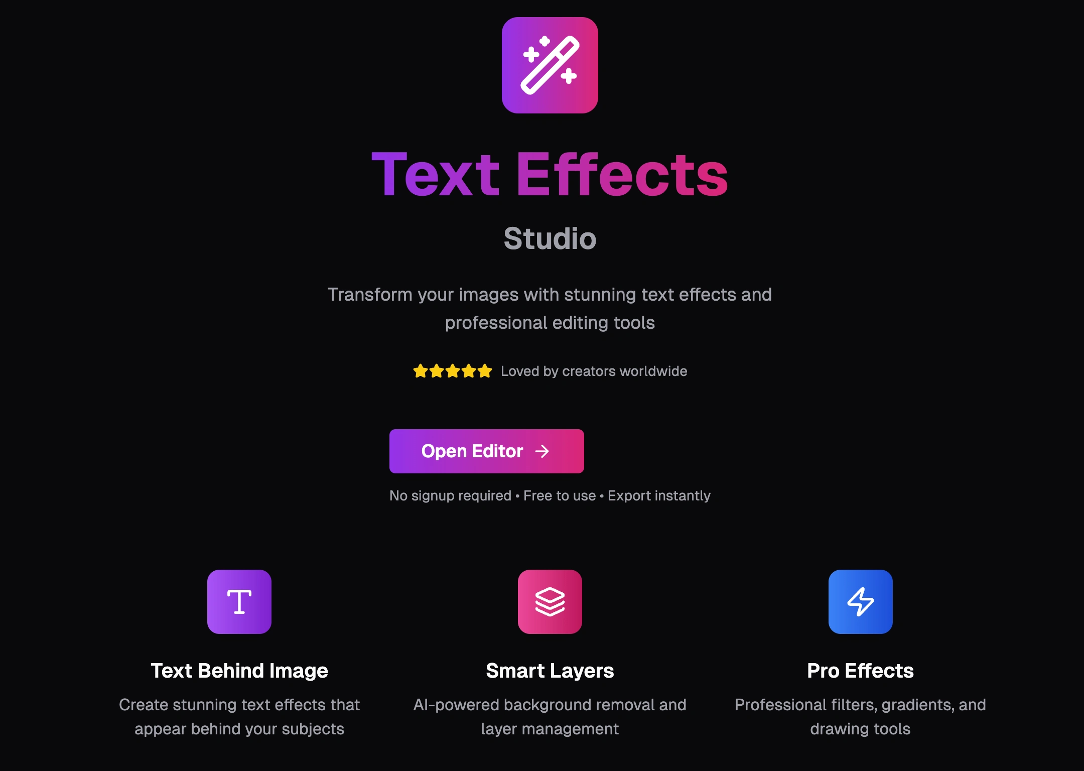 Create stunning text effects that appear behind your subjects AI-powered background removal and layer management Professional filters, gradients, drawing tools