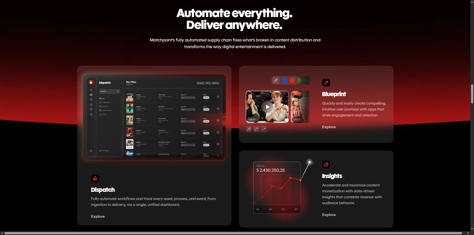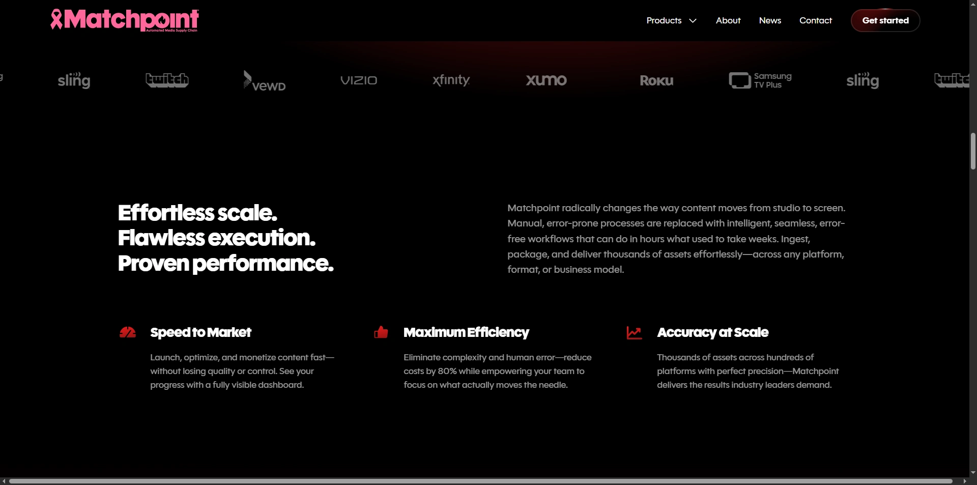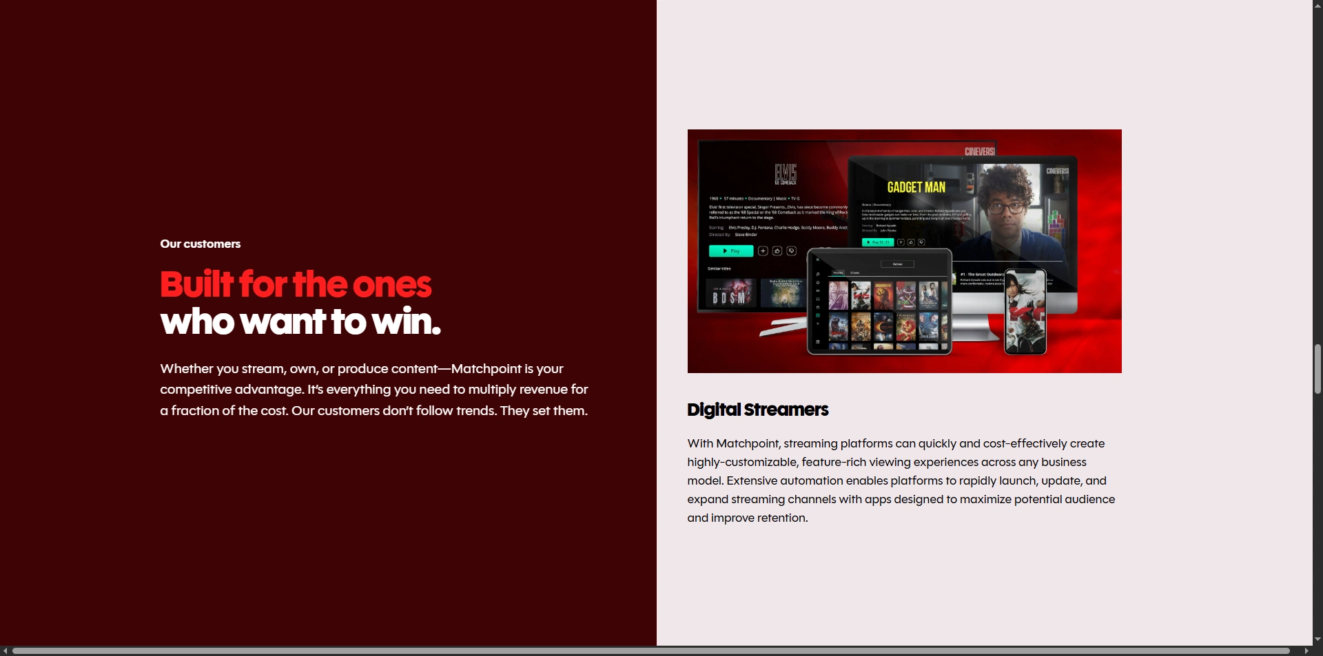 I designed and developed the MatchPoint website using Webflow. MatchPoint is a media-technology platform focused on automating the digital media supply chain, enabling content owners, distributors, and streaming services to ingest, package, and deliver assets globally at scale.