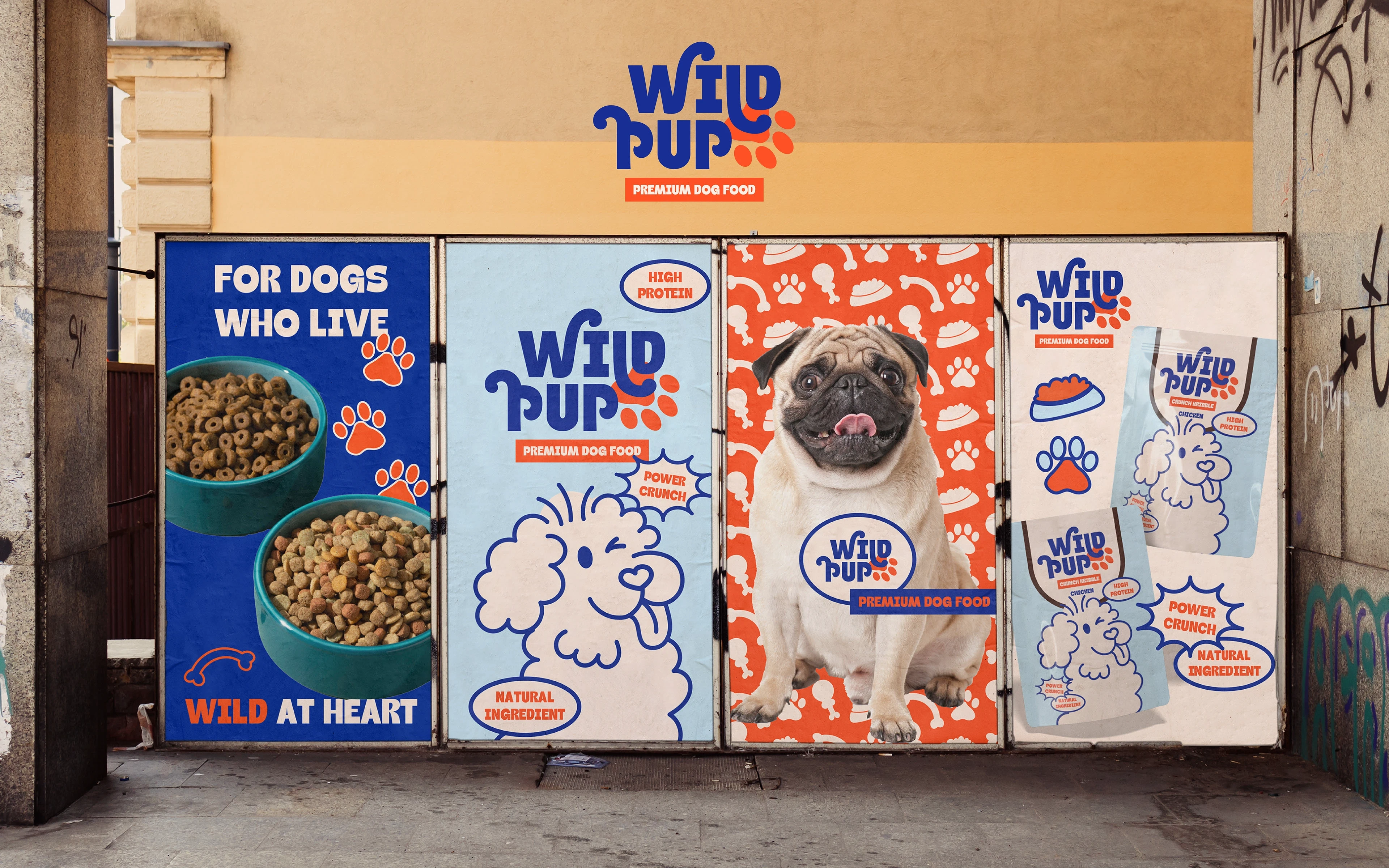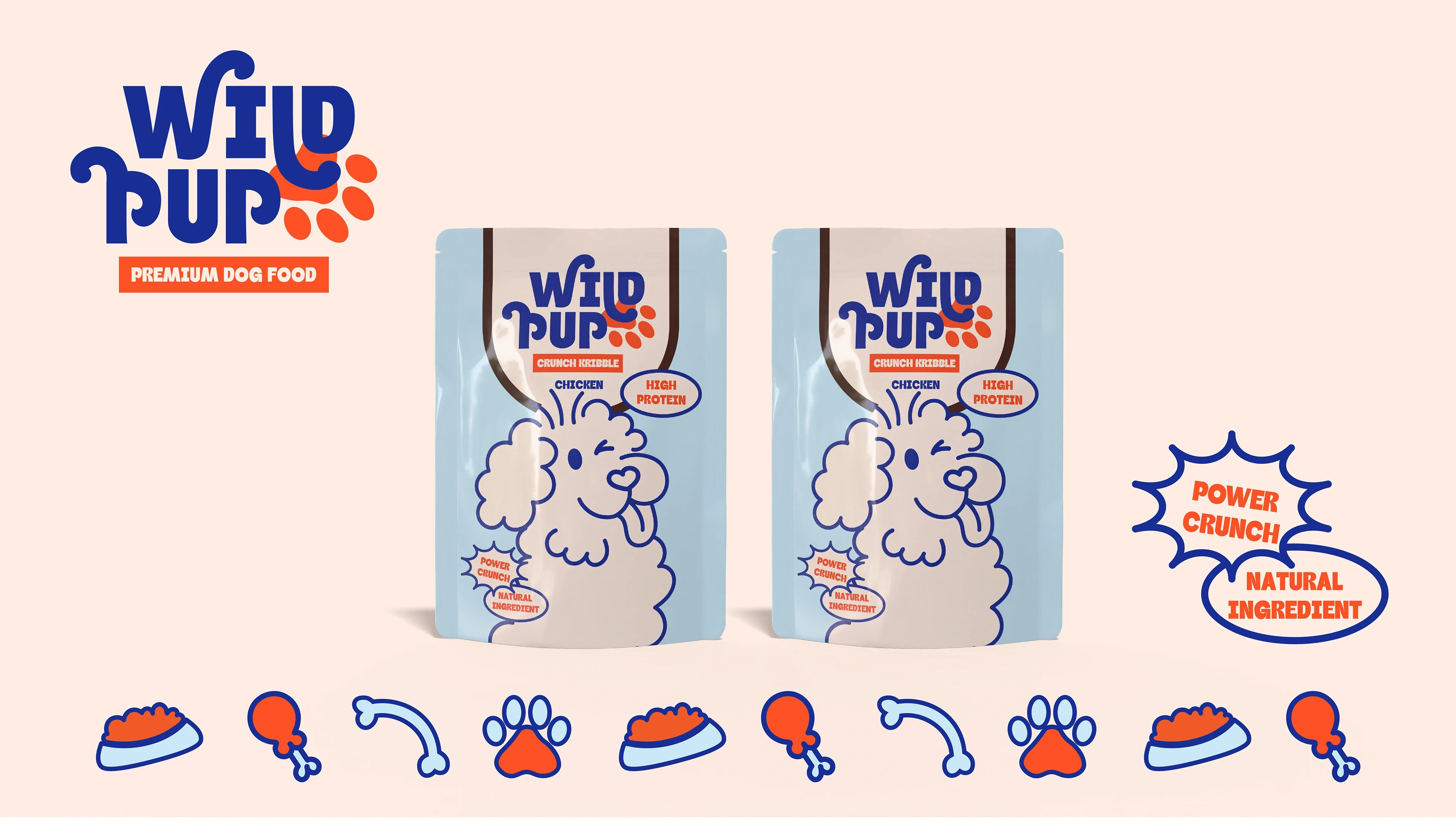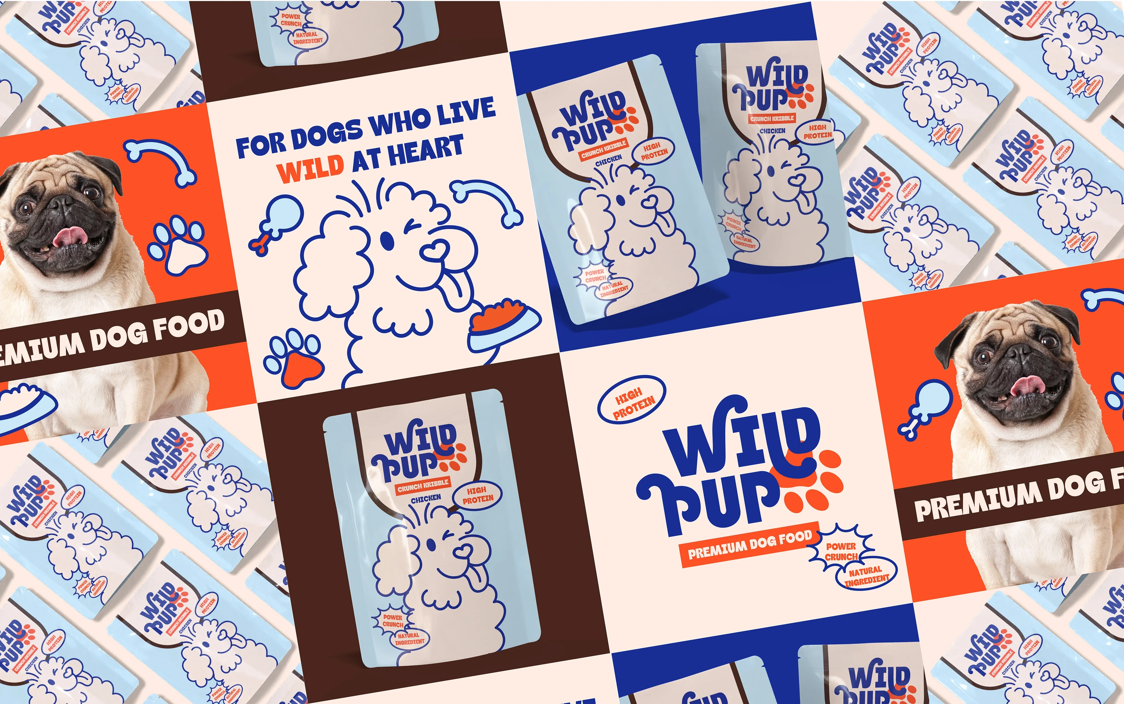 Wild Pup, a bold, playful premium dog food brand — designed to capture the joyful spirit of our favorite four-legged friends.