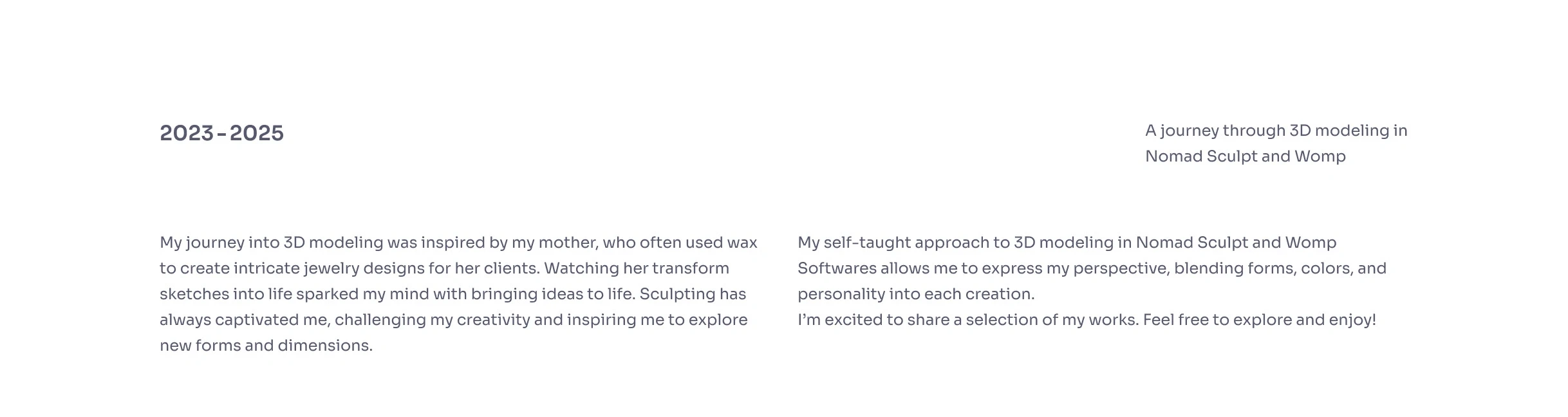 3D Art, 3D Modeling, 3D Motion, Nomad Sculpt, Figma, Adobe InDesign
